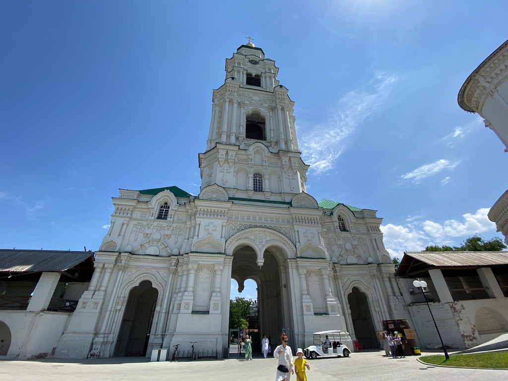 Вход внутрь Кремля осуществляется через Пречистенские ворота с надвратной соборной колокольней. Построили колокольню в 1910 году. Ее высота составляет примерно 80 метров. Колокольня — падающая: она отклонилась от своей оси на 52 сантиметра.