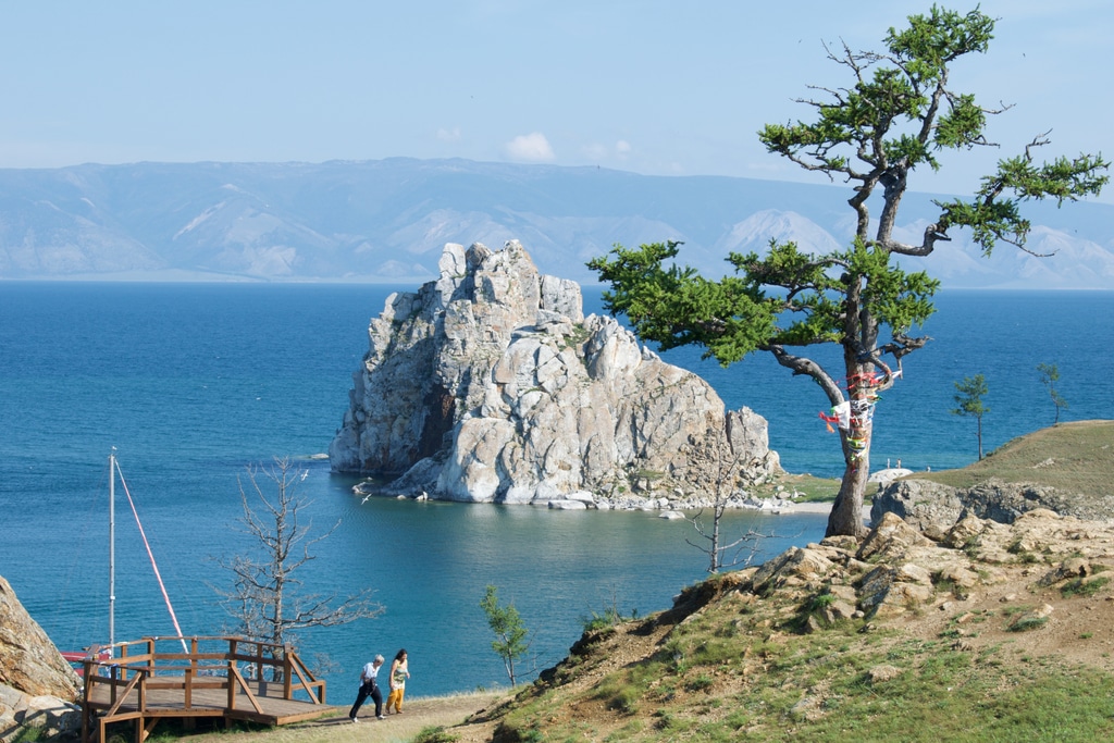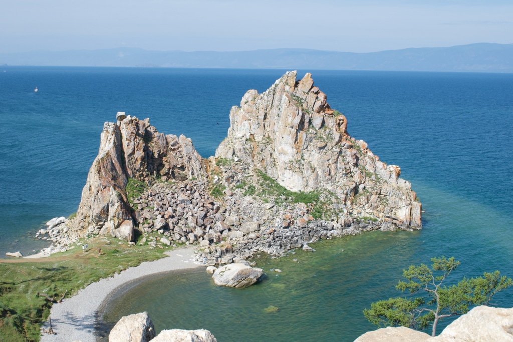 От скалы открывается красивый вид на главную местную достопримечательность — гору Шаманку. А еще на мысе Богатырь стоит священная сосна, на которую можно привязать ленточку и о чем-нибудь попросить местных богов. Ленточки продаются в магазинах-юртах недалеко от мыса Богатырь.