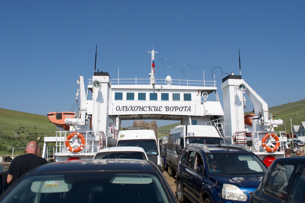 Как я уже говорила, чтобы попасть на паром, нужно отстоять очередь. По дороге в Хужир наш автобус провел в такой очереди часа два. Зато на обратной дороге из Хужира в Иркутск нам повезло. На паром мы попали уже через несколько минут.