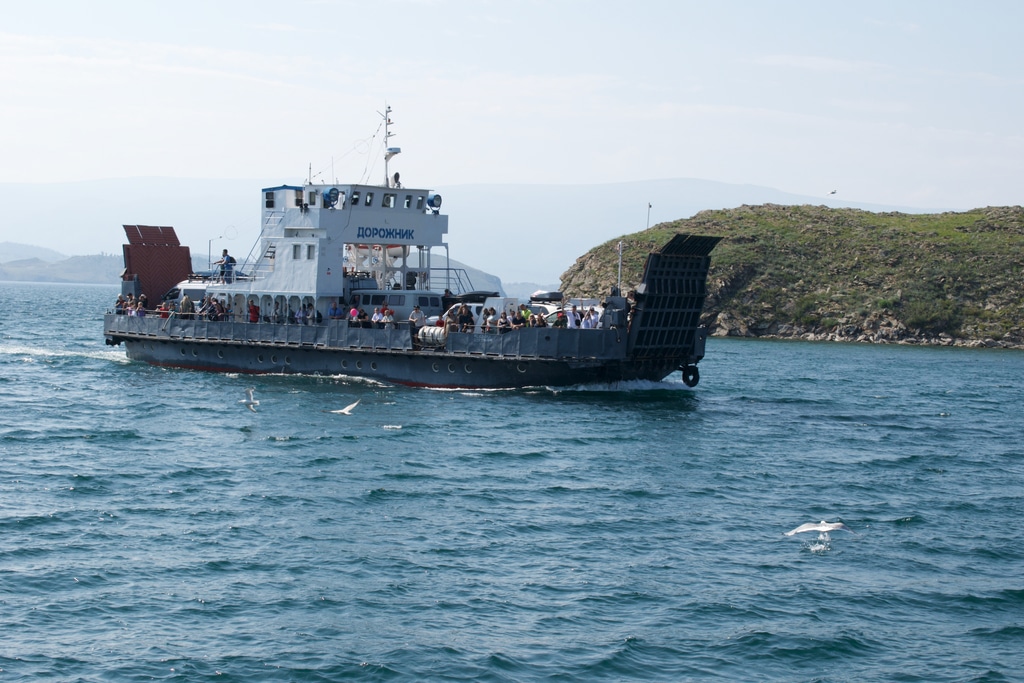 Наш же паром назывался «Ольхонские ворота». Он примерно такой же как и «Семен Батагаев». Так совпало, что на «Ольхонских воротах» мы ехали на Ольхон и на нем же возвращались обратно.