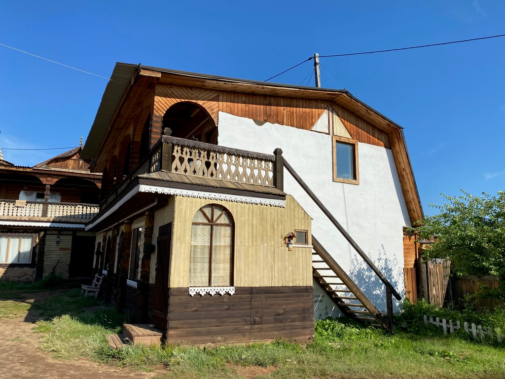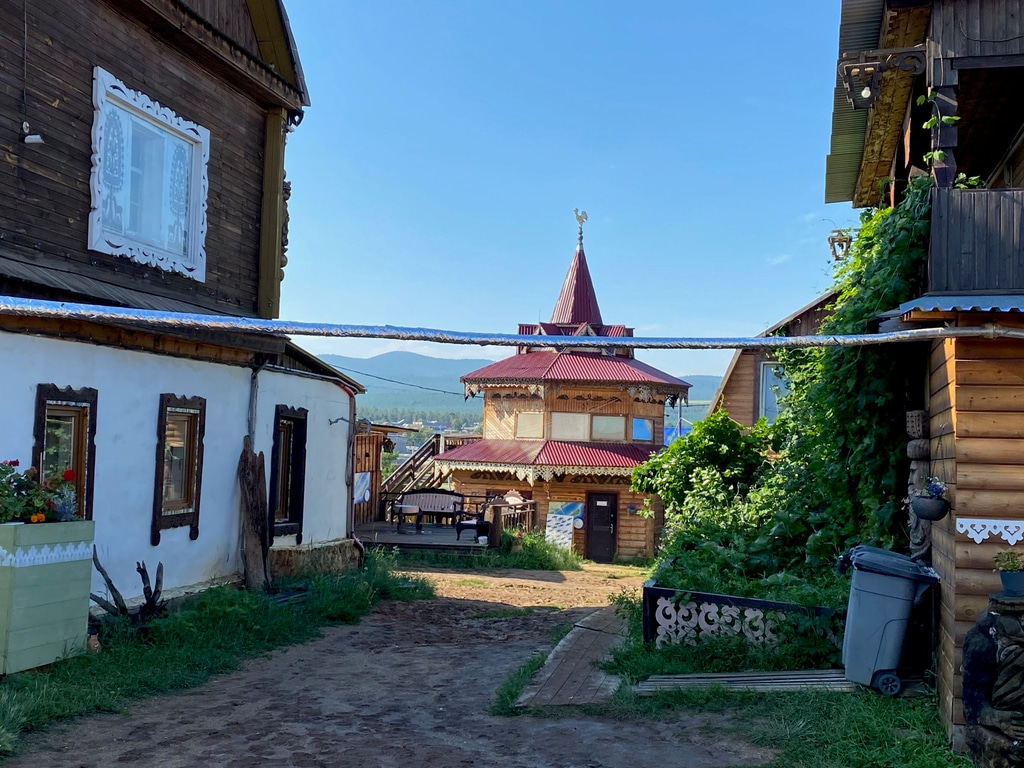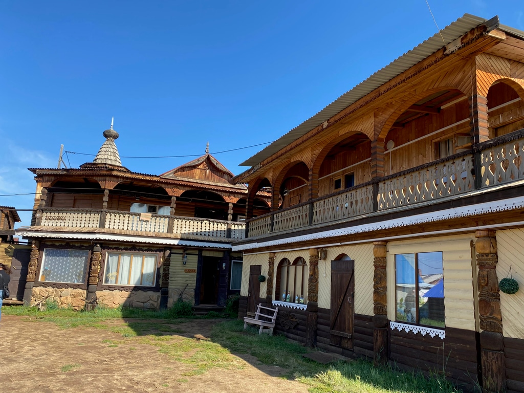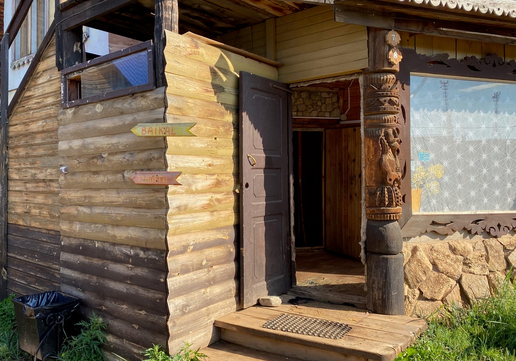 На территории отеля — несколько небольших двухэтажных деревянных домиков с хорошей слышимостью. Сами номера просторные. В них все очень просто и только все самое необходимое с минимумом удобств и чистоты. Двери из фанеры с хлипкими замками. Большим плюсом нашего номера был вид на Байкал прямо из окна.