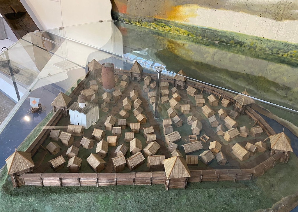 На макете музея видно, как в 13 веке выглядела берестейская крепость. Внутри деревянных крепостных стен с башнями разместилось множество жилых и хозяйственных построек, православный храм и каменная башня. Последняя была командным пунктом обороны города в случае нападения врага.