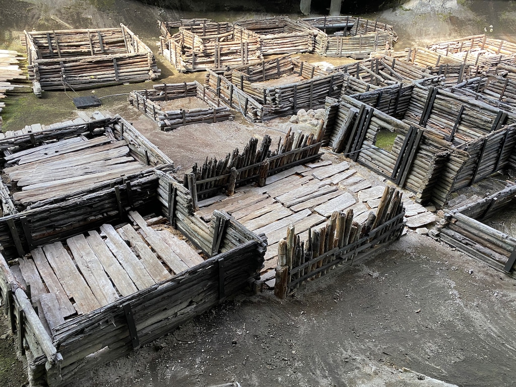 Как примерно выглядели эти домики, хорошо видно на макете. Строения вполне себе симпатичные и даже с окошками.