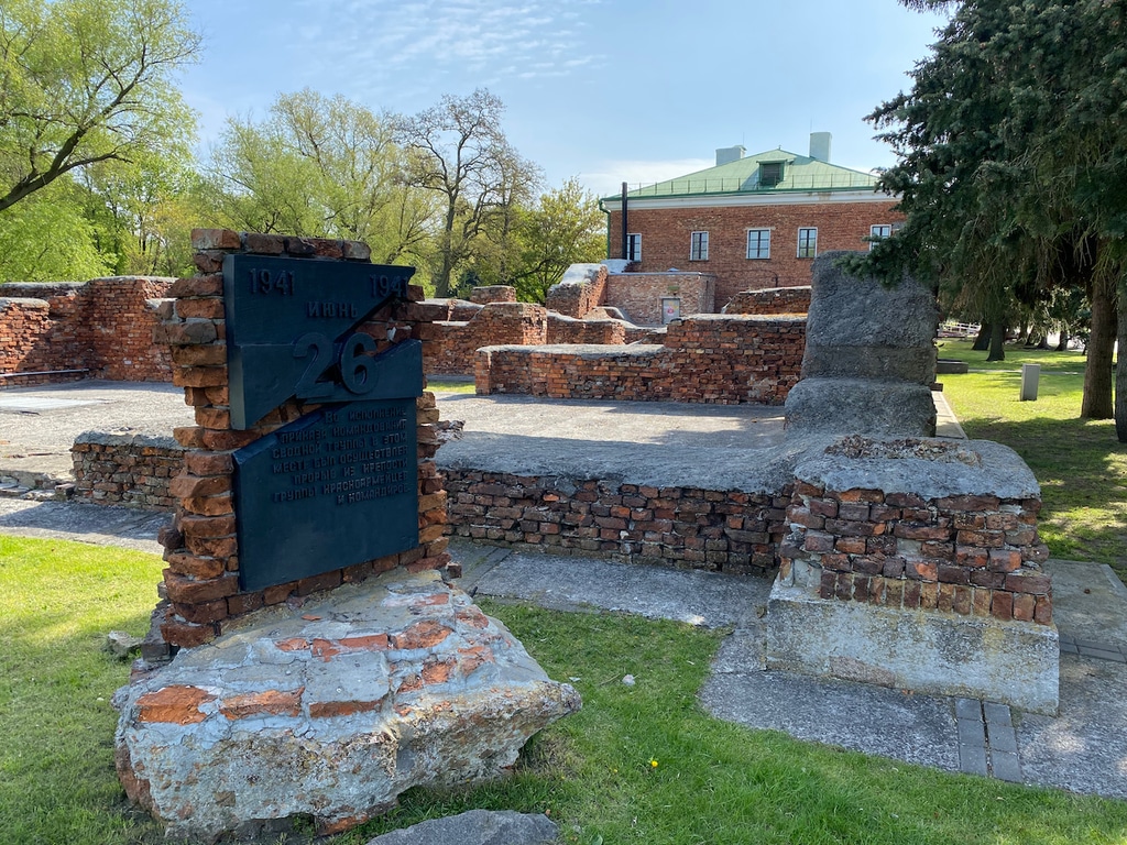 За руинами Белого дворца находится здание Музея обороны Брестской крепости. Во время войны это были солдатские казармы. Музейная экспозиция посвящена истории крепости и событиям 1941 года.