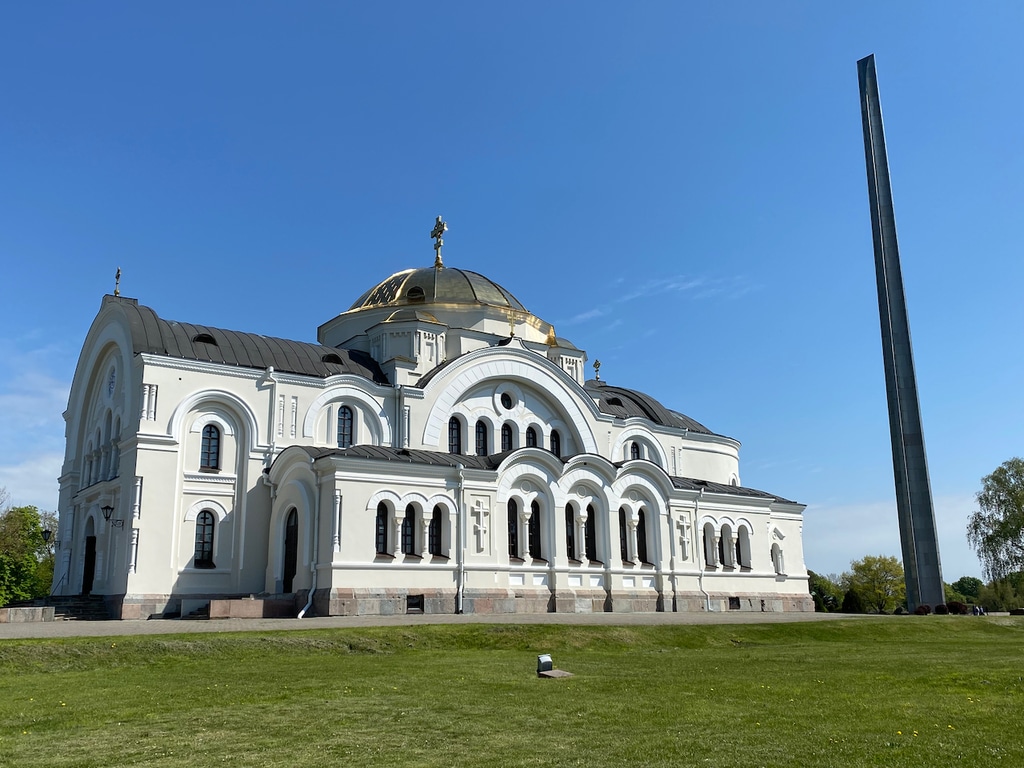 За памятником «Мужество» возвышается красавец и душа крепости Свято-Николаевский собор. Храм построили в 1876 году как православный. Однако когда сюда пришла Польша его переделали в костел. Вернулся собор уже в другую Россию — советскую и поэтому сделался гарнизонным клубом. Снова православным храм стал уже в 1990-е годы.