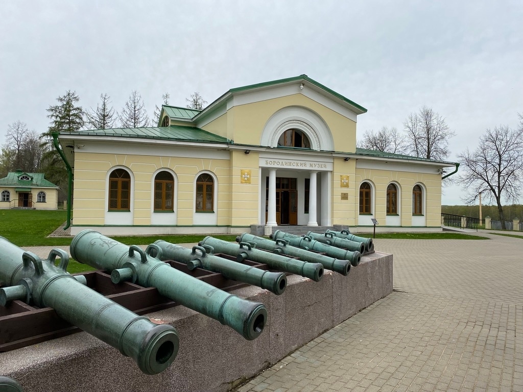 Перед зданием музея можно увидеть трофейные французские артиллерийские орудия времен Бородино.