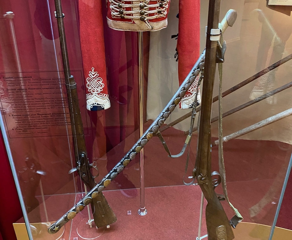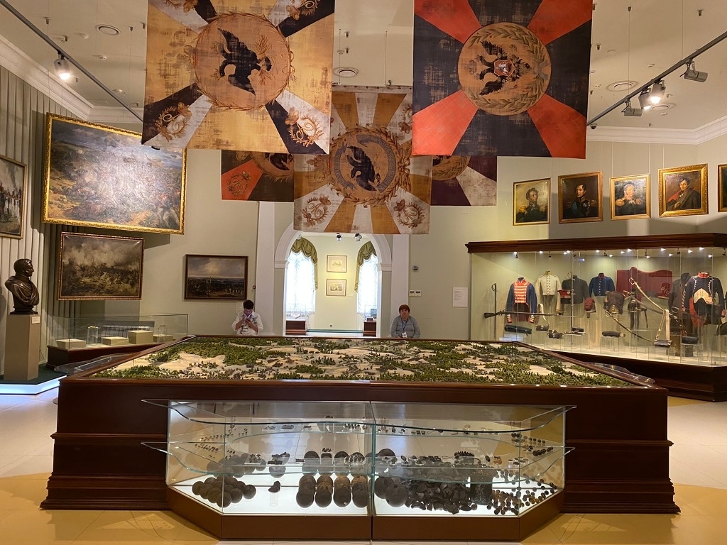 В музее демонстрируется макет Бородинского сражения, а также мундиры, оружие, знамена того времени и многое другое.