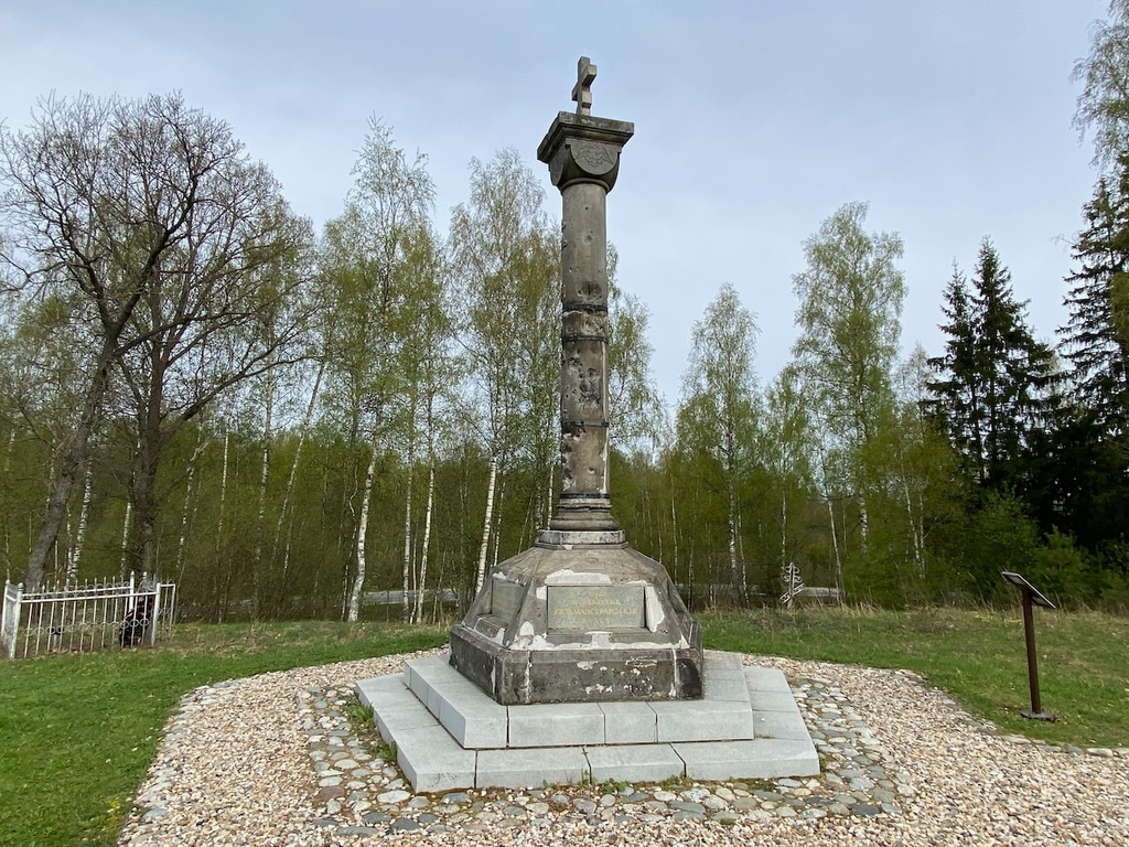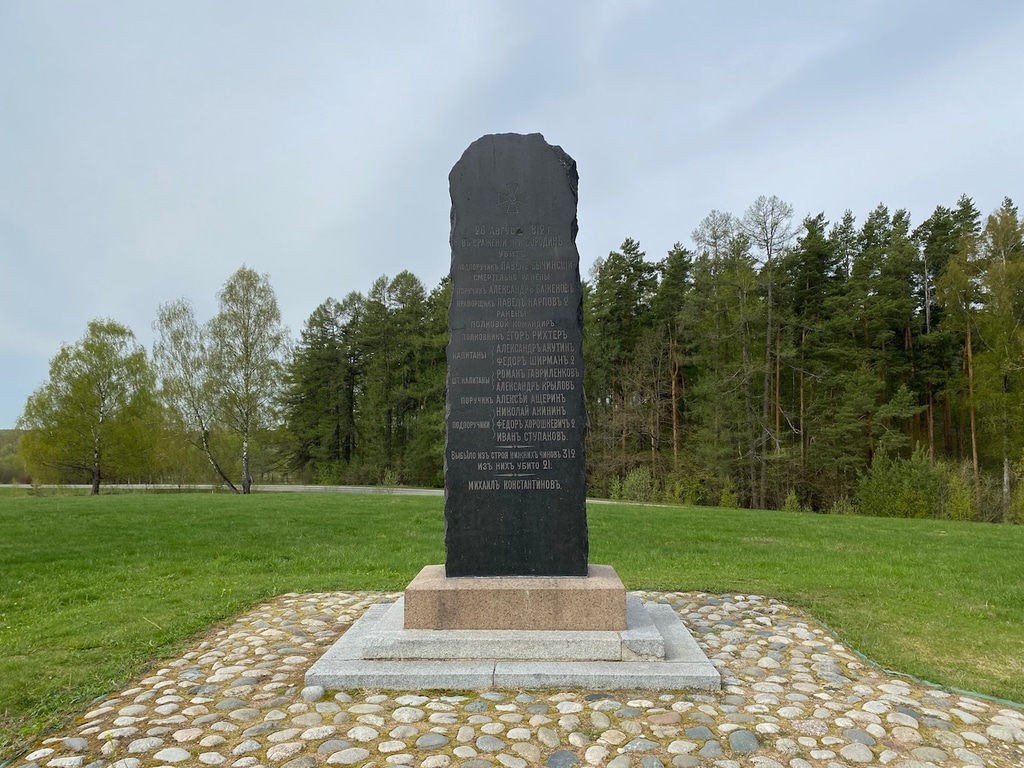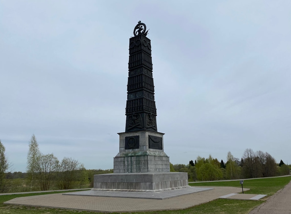 Главный памятник героям Бородинского сражения установили в 1839 году в честь 25-летия со дня Бородинского сражения. Его высота — 27,5 метров. На его гранях содержится информация о численности французской и русской армий, о погибших в Бородинском сражении русских генералах, об отступлении русских к Москве, о вступлении французов в первопрестольную и взятии Парижа. Согласно тексту на памятнике в 1812 году 554 000 солдат наполеоновского войска вошли в Россию, из них назад вернулись только 79 000.