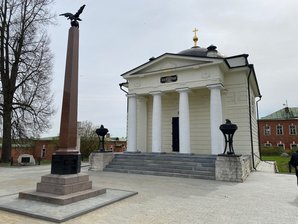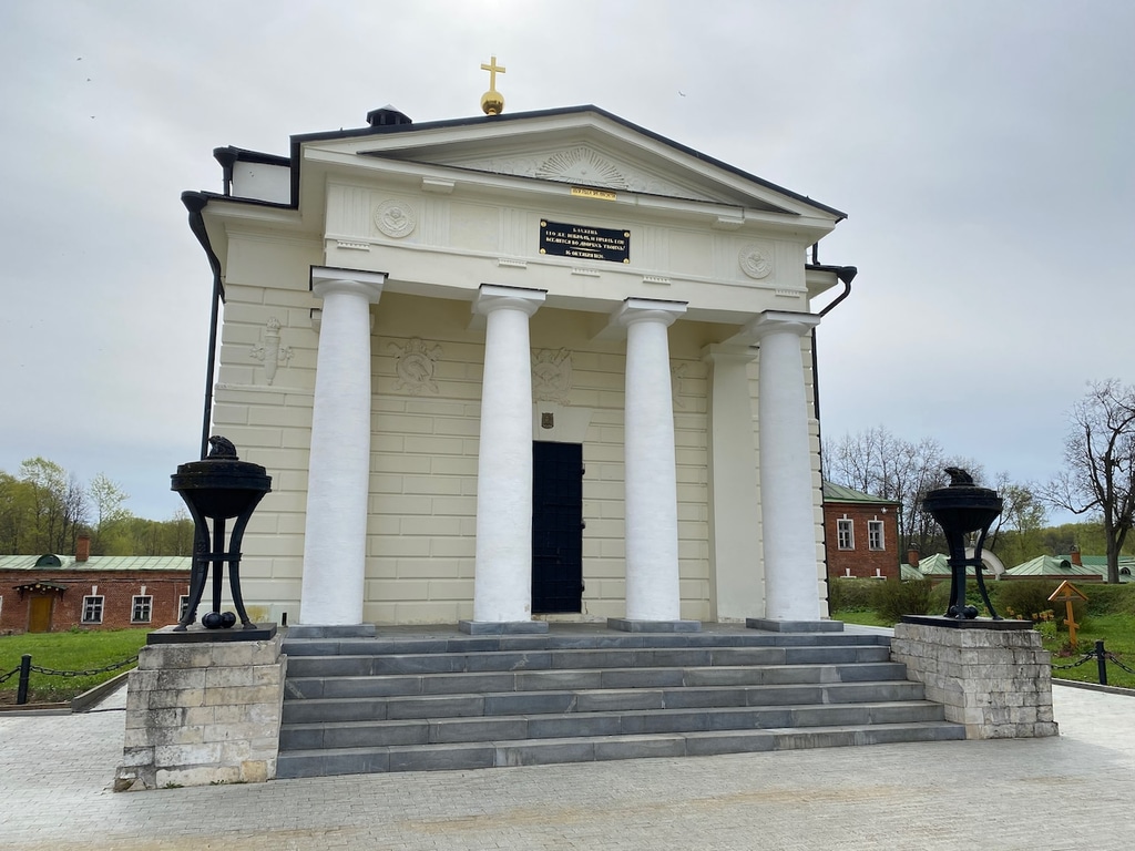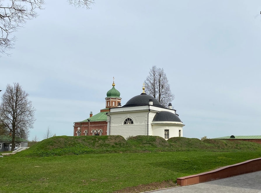 Следующим объектом для знакомства стал Спасо-Бородинский монастырь. Обитель имеет очень любопытную историю. Как уже говорилось, в Бородинской битве принимал участие генерал Александр Тучков. Он погиб на Семеновской батарее. Его останки после сражения так и не нашли, и вдова Маргарита Тучкова решила построить на месте гибели мужа храм. Деньги на строительство выделил Александр I и уже в 1820 году церковь была построена.