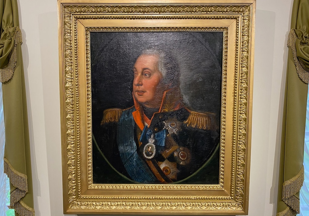 Как уже говорилось главнокомандующим русской армией в 1812 году был Михаил Кутузов. В одном из залов музея экспонируется его последний прижизненный портрет. Главнокомандующий смотрит в сторону. Так менее заметен дефект на правом глазу, который был результатом ранения 1774 года во время русско-турецкой войны. После Отечественной войны 1812 года Кутузов прожил недолго. Он скончался весной 1813 года, а похоронили его в Санкт-Петербурге в Казанском соборе.