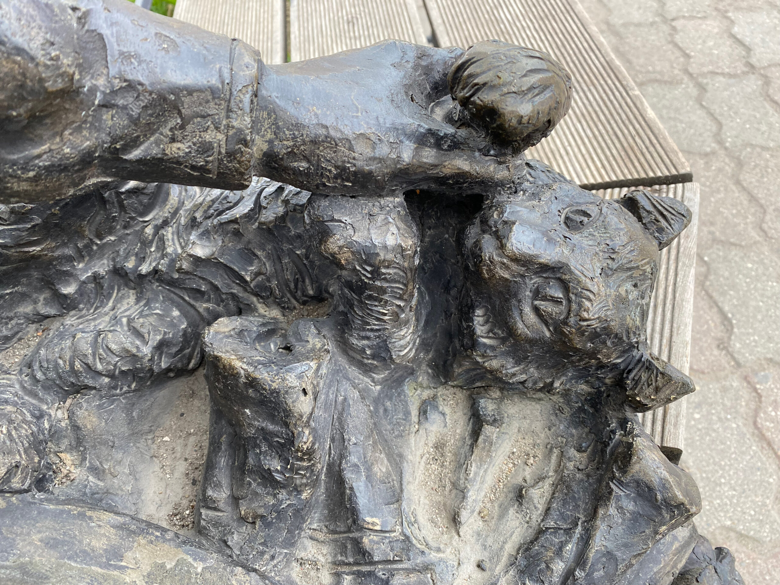 Левой рукой гимназистка гладит кота, а в правой руке у нее книга. Говорят, если потрогать этого кота перед экзаменом, то это принесет удачу.