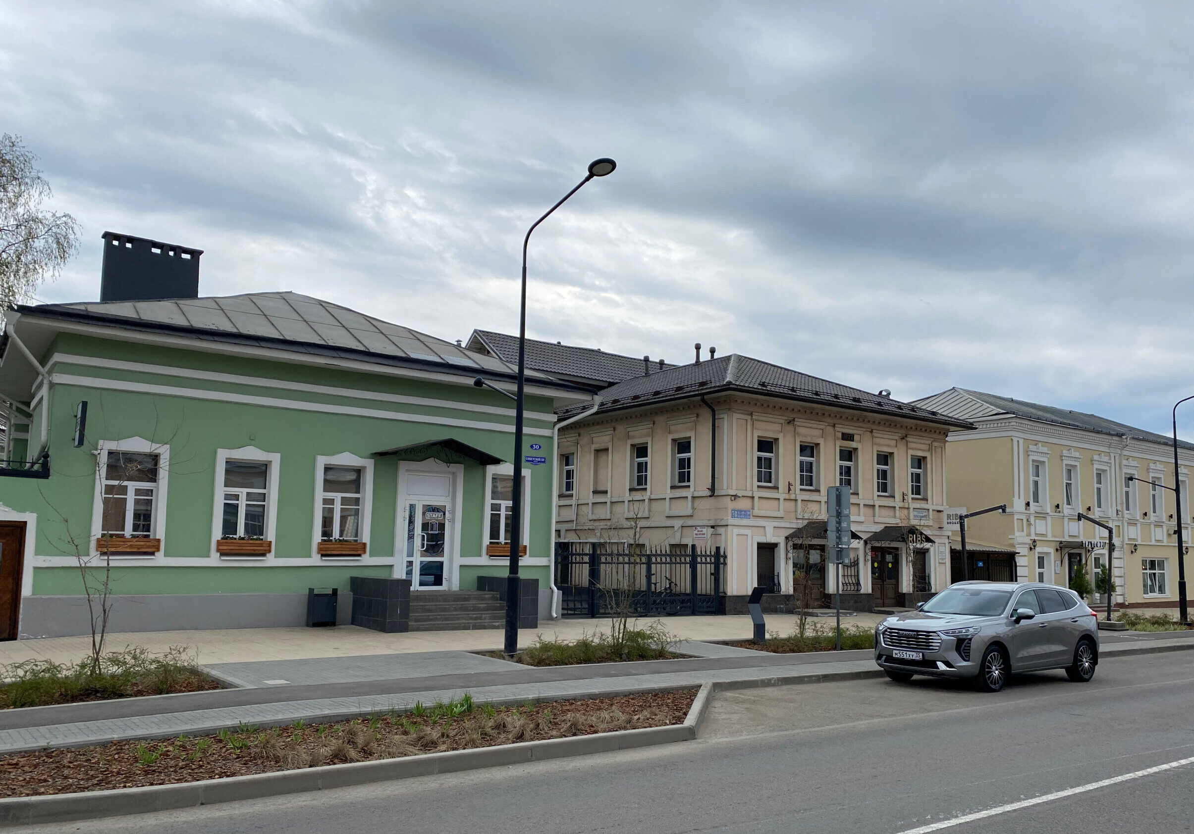 Советский проспект до революции звали Воскресенским в честь Воскресенского монастыря, что стоит в конце улицы. По обеим сторонам — дома 19-начала 20 века.
