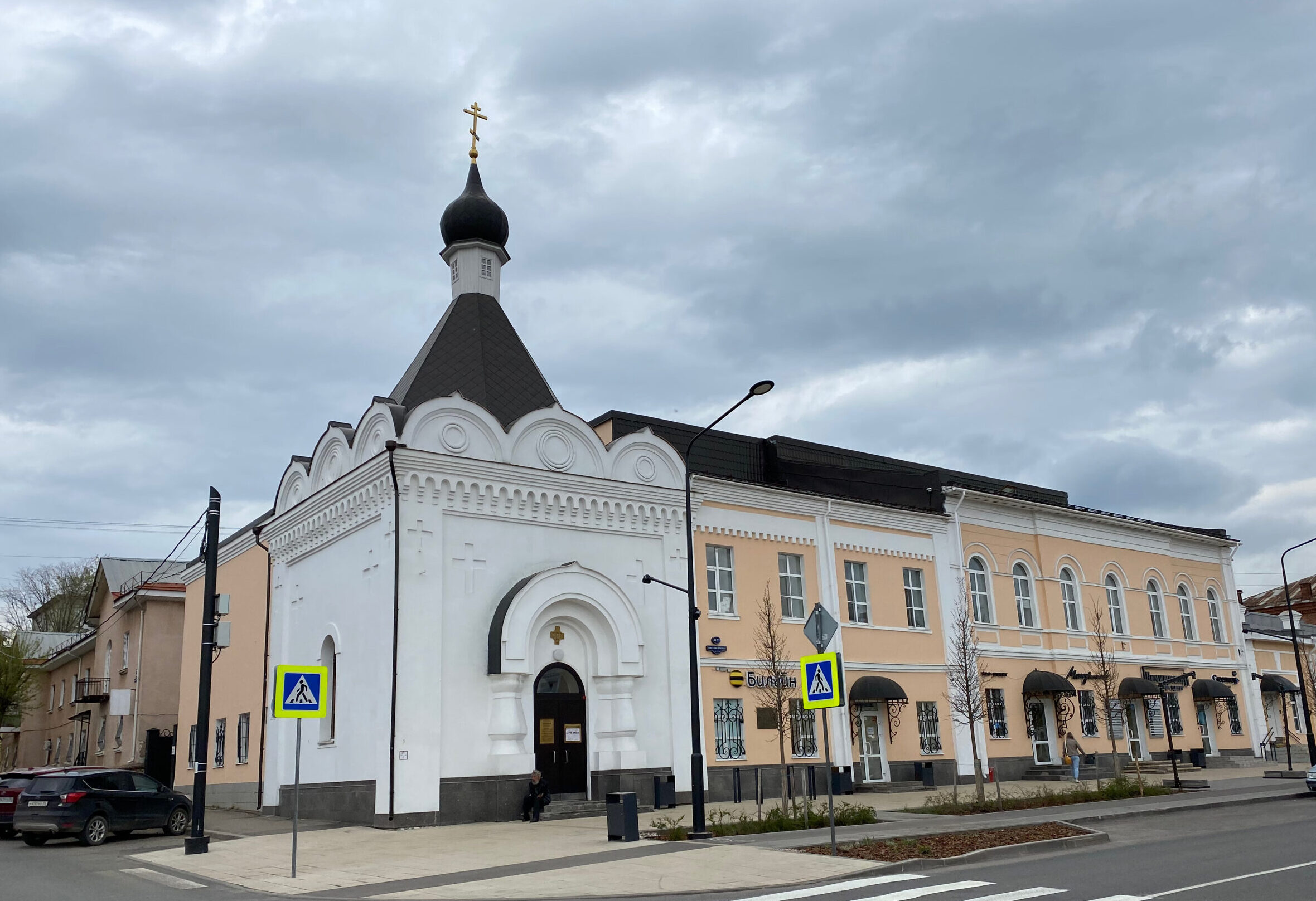 Чуть позже к часовне пристроили двухэтажное здание — монастырскоое подворье(желтое справа).