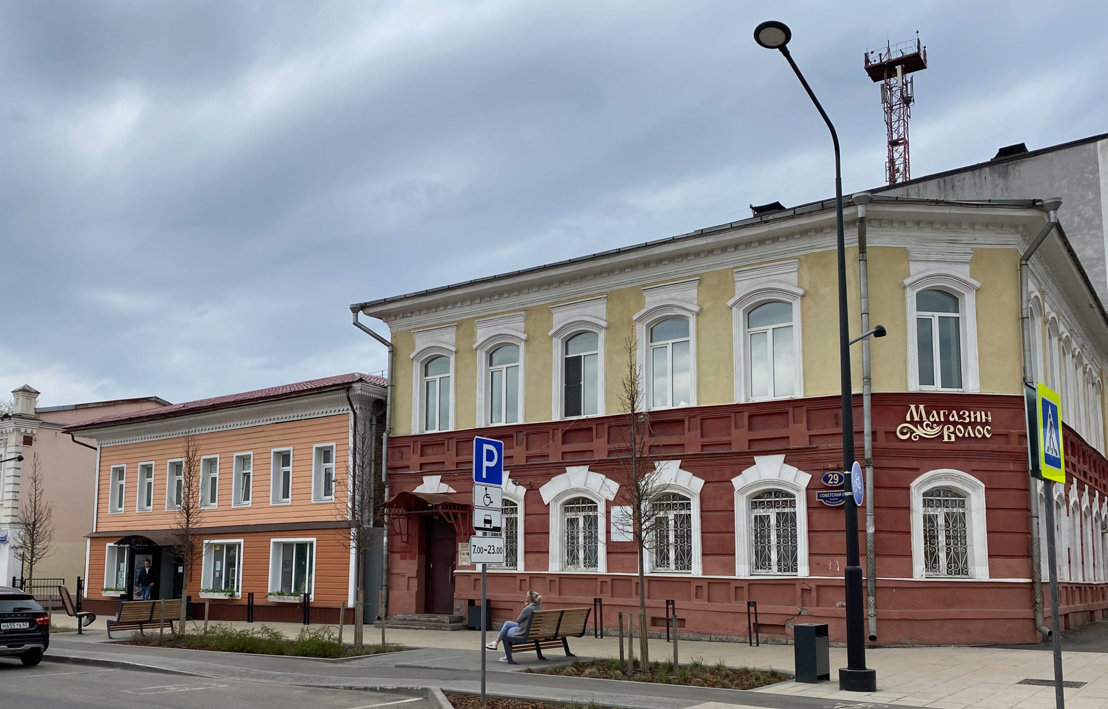 Двухэтажный особняк, в котором сегодня размещается магазин волос, до революции принадлежал купцу Николаю Заводчикову. Построили его в 1847 году. Когда-то здесь размещался городской клуб и кипела нешуточная жизнь с балами, маскарадами, литературными вечерами.