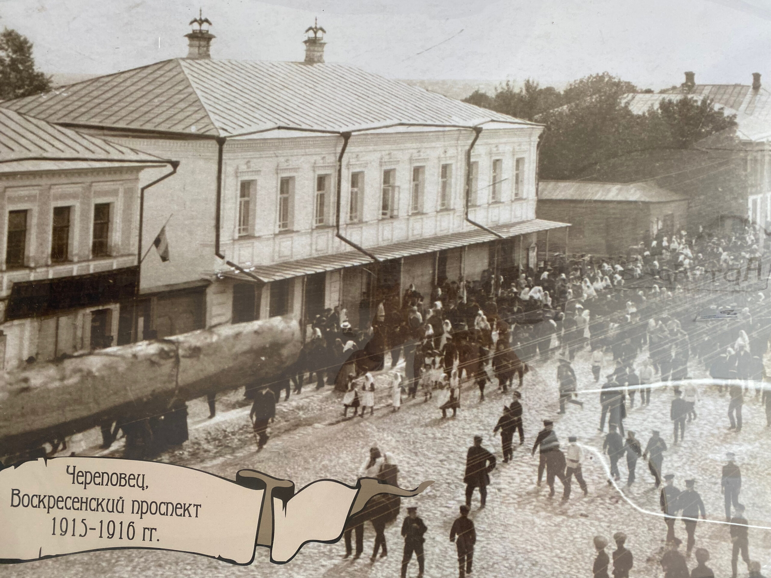Прогуливаясь по Советскому проспекту, невольно замедляешь шаг у одной из арок. Там притаилась небольшая выставка старых фотографий. На снимках — дореволюционный Череповец: тот же проспект, но совсем другой, непривычный глазу.