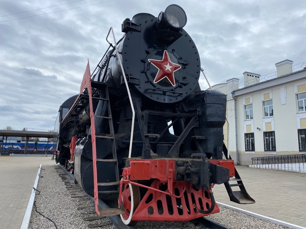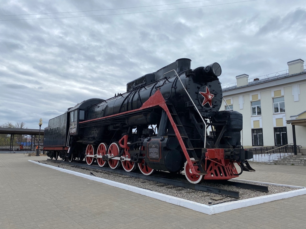 Рядом с вокзалом можно увидеть советский паровоз середины 20 века. Такие паровозики бегали по железным дорогам в советское время.
