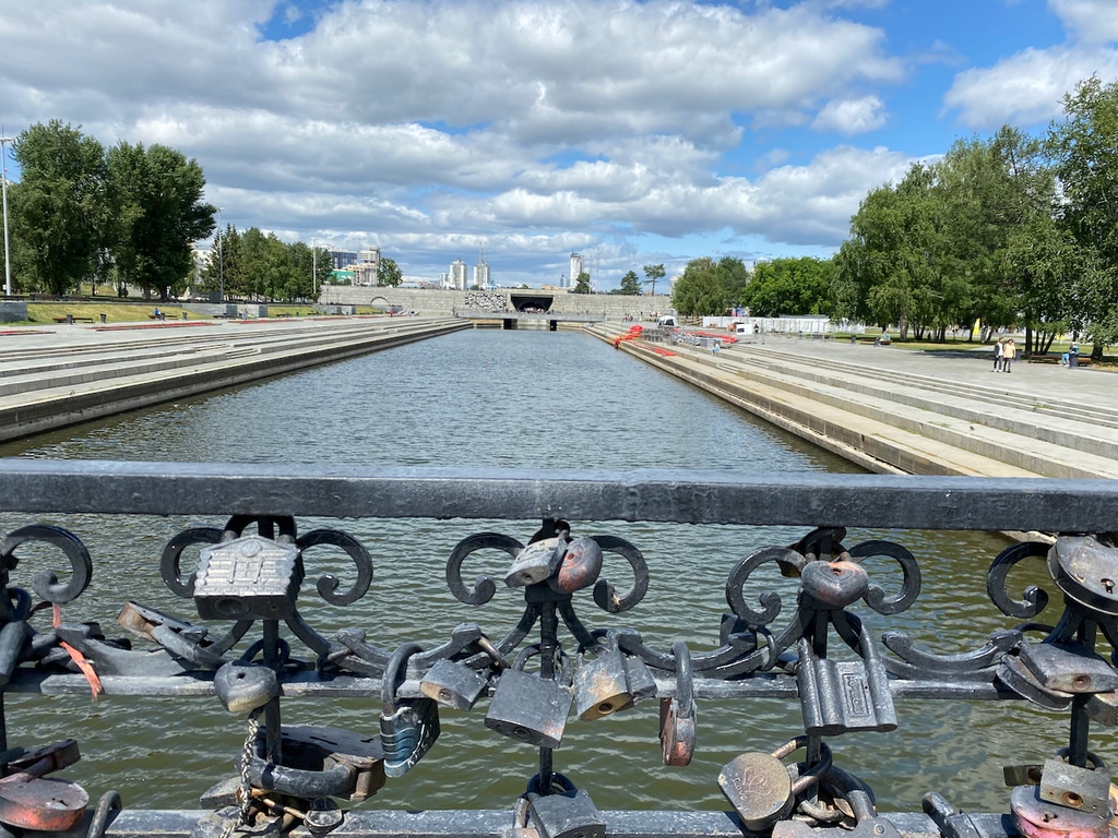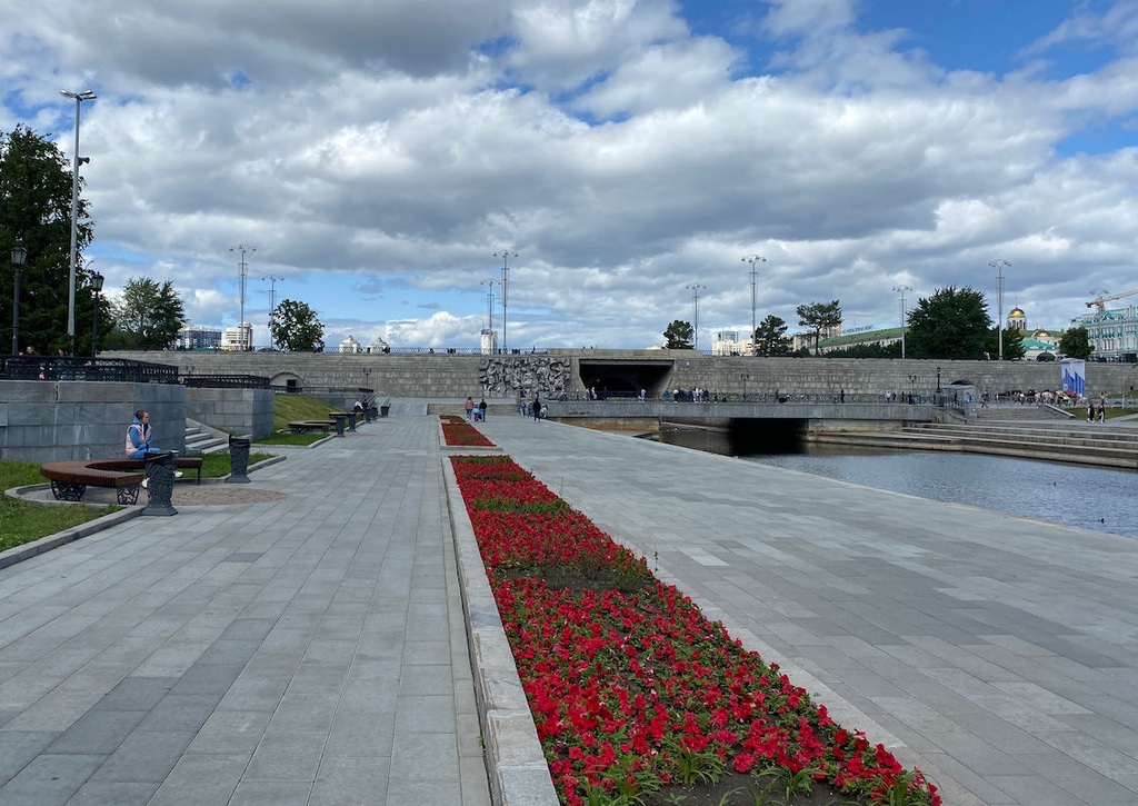 Продолжаем прогулку по городу. По проспекту Ленина через Плотинку выходим на правый берег Исети к Площади 1905 года.