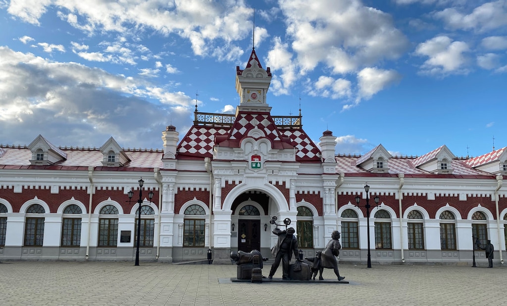 Железнодорожный вокзал в Екатеринбурге построили в 1878 году. Точно такой же вокзал есть и в Перми. Оба города замыкали первую на Урале железную дорогу и по задумке строителей должны были иметь одинаковые вокзалы.