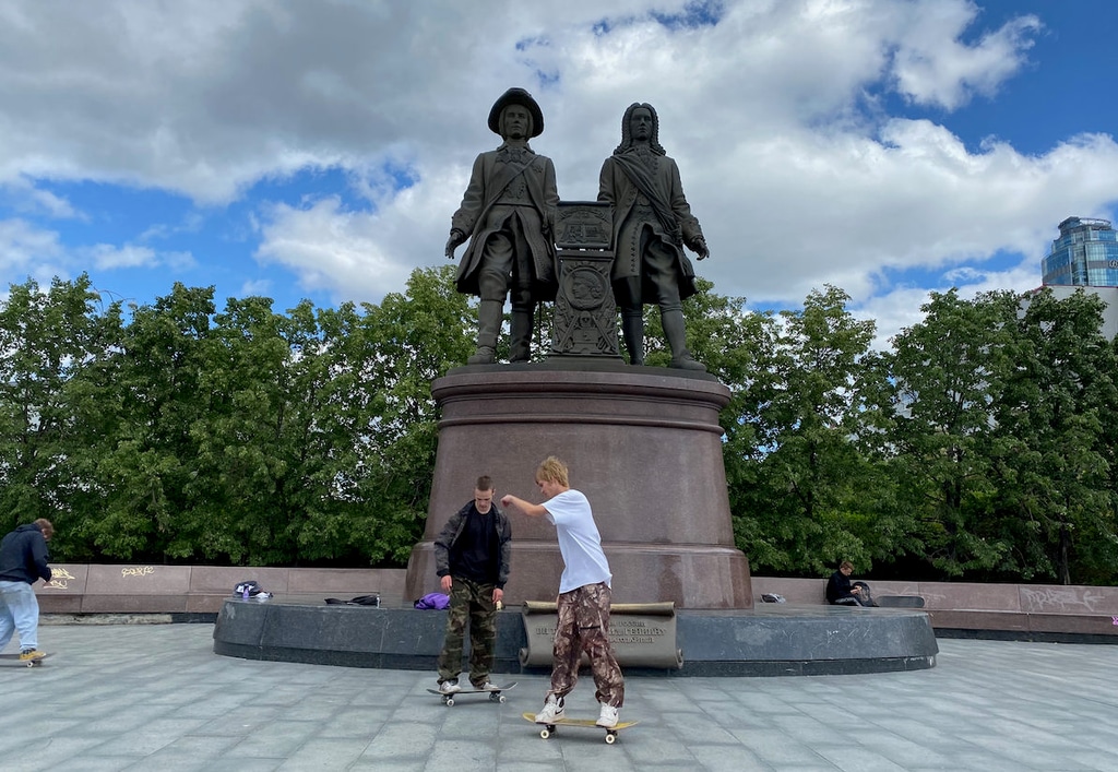 Василий Татищев и Вильгельм де Геннин считаются основателями Екатеринбурга, поэтому в 1998 году им установили памятник в том месте, откуда начинался город.