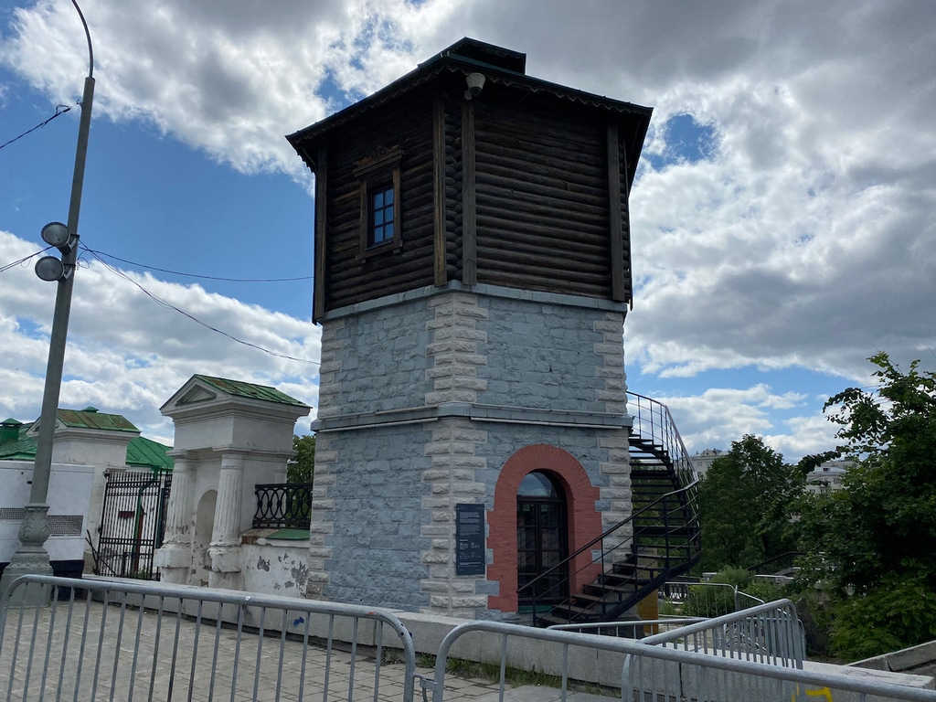 В Историческом сквере недалеко от Плотинки и бывшими заводскими корпусами сохранилось еще одно старое сооружение — водонапорная башня