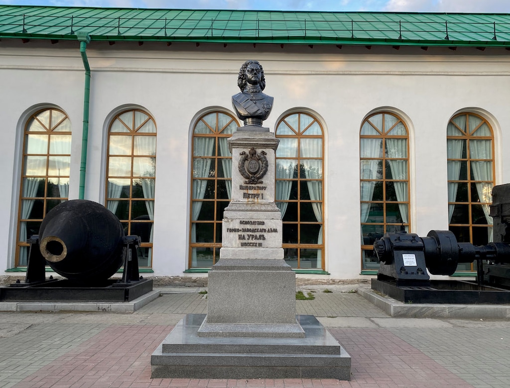 Рядом с музеем бюст Петра I, который считается «основателем горно-заводского дела на Урале», и выставка крупногабаритной заводской техники 19-20 века прямо под открытым небом.