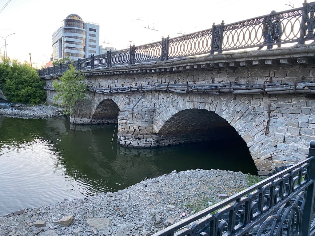 Каменный мост через Исеть на улице Малышева появился в 1840 году. Это был первый в городе мост из камня. До него мосты в Екатеринбурге строились из дерева. Мост оказался очень прочным и дошел до наших дней почти без изменений.
