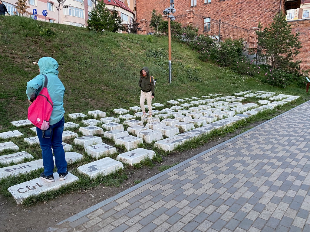 Памятник клавиатуре — пожалуй, самая оригинальная достопримечательность Екатеринбурга. Он состоит из вкопанных в землю бетонных клавиш компьютера. Размеры клавиш такие большие, что можно на них спокойно стоять двумя ногами. А еще существует такая примета: если переходить с буквы на букву и «напечатать» свое желание, то говорят, что оно обязательно сбудется. Вот такая магическая клавиатура!