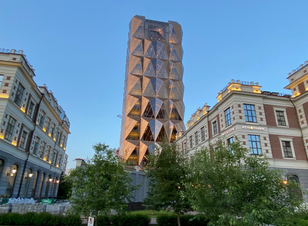 Здание, по внешнему виду напоминающее ананас, на самом деле является штаб-квартирой Русской медной компании. Построено оно в 2020 году.