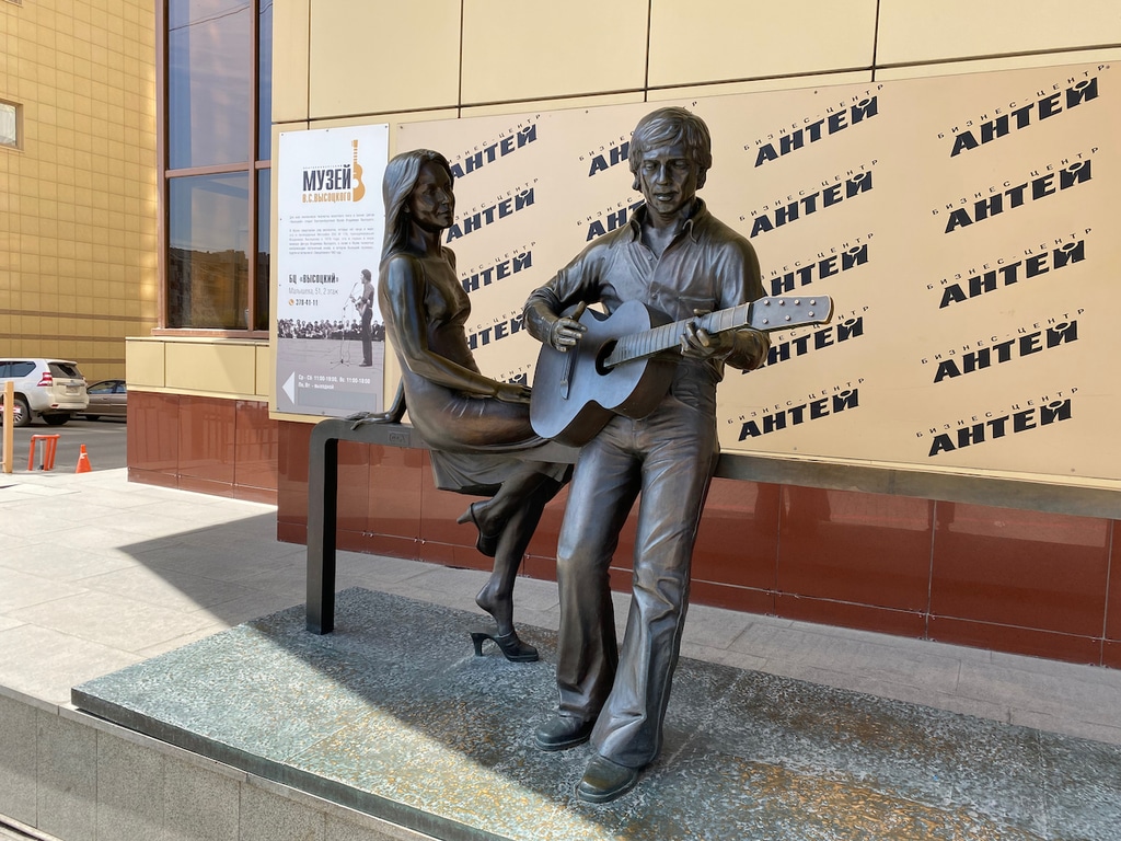 Перед входом в музей нас встречают сам поэт с гитарой и его последняя супруга Марина Влади.