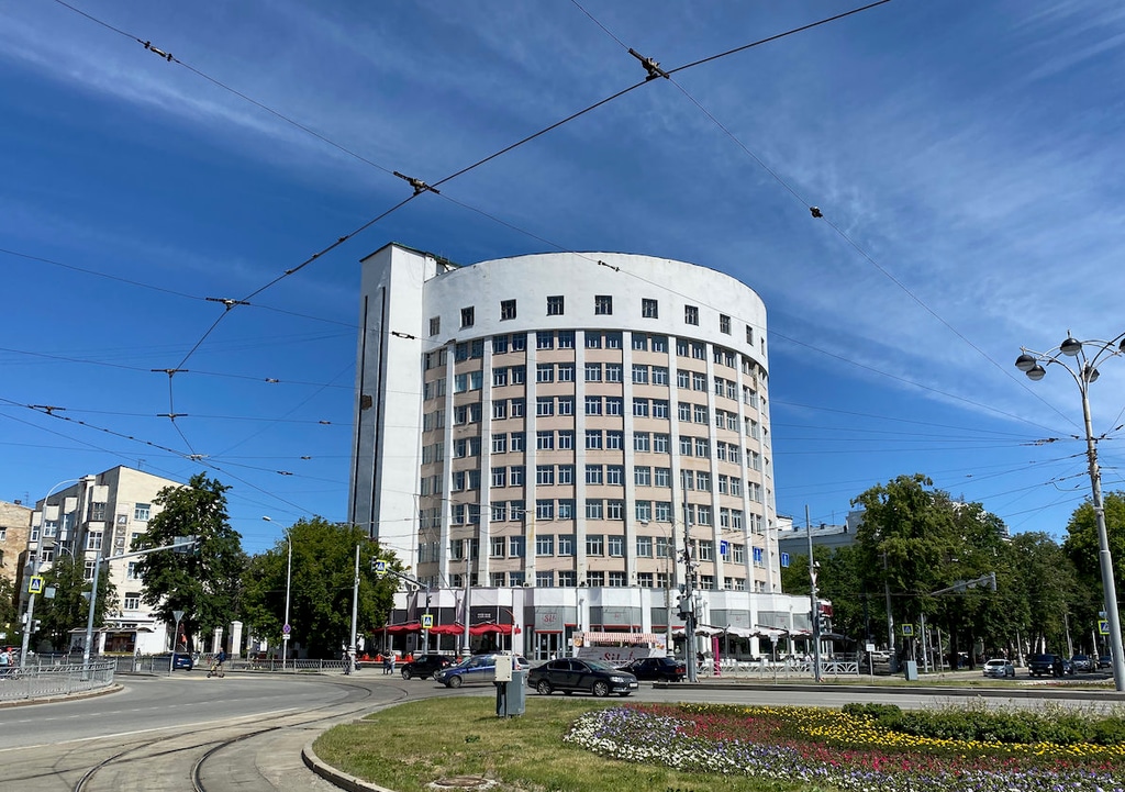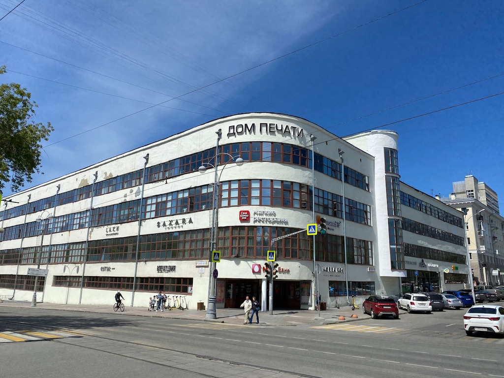 Дом печати построили в 1930 году для издательства «Уральский рабочий» в стиле авангарда.