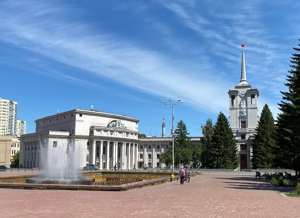 Чуть дальше по улице Ленина друг против друга стоят еще две постройки с интересной историей. Это здания театра оперы и балета и уральского университета. Между ними возвышается памятник Свердлову. Тому самому агитатору, о котором говорилось в начале.