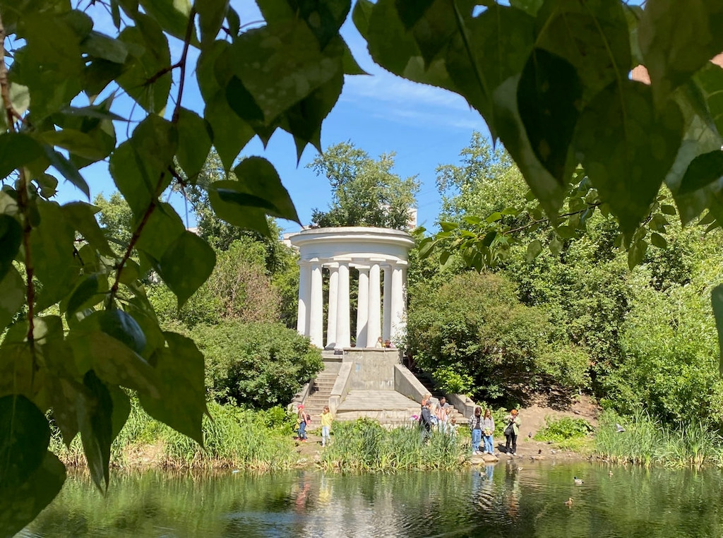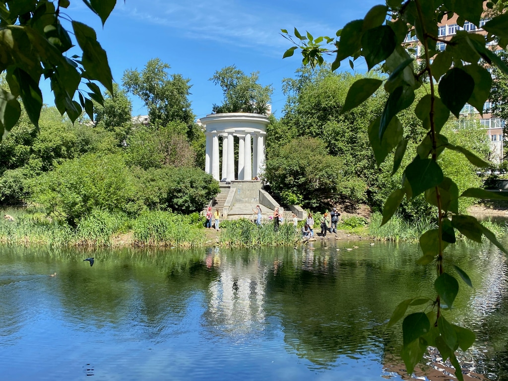 Почва в этих местах была болотистой. Чтобы осушить землю, в парке вырыли пруд, а посреди него на островке поставили изящную ротонду. Старая ротонда не сохранилась, а та, что мы видим сегодня, построена в советские 1930-е годы.
