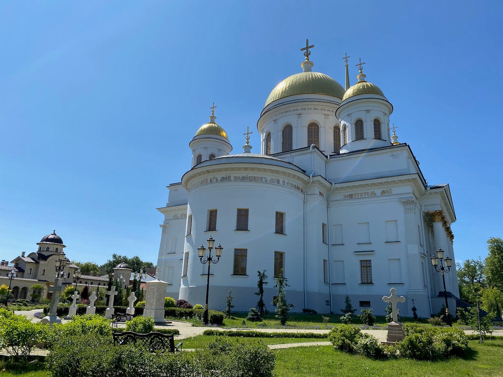 Собор Александра Невского — главный храм Ново-Тихвинского монастыря. Его заложили в 1814 году в честь победы в Отечественной войне 1812 года над Наполеоном.