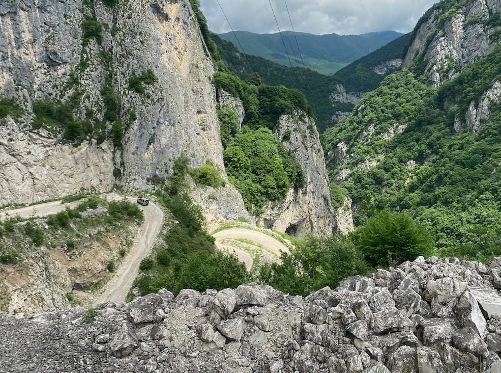Дорога представляет собой крутой серпантин, а местами находится просто в ужасном состоянии. Правда, кое-где попадается строительная техника, видимо, дорогу пытаются восстановить. Единственное, что хоть как-то ее скрашивает, так это цветные скальные рисунки на протяжении почти всего пути.
