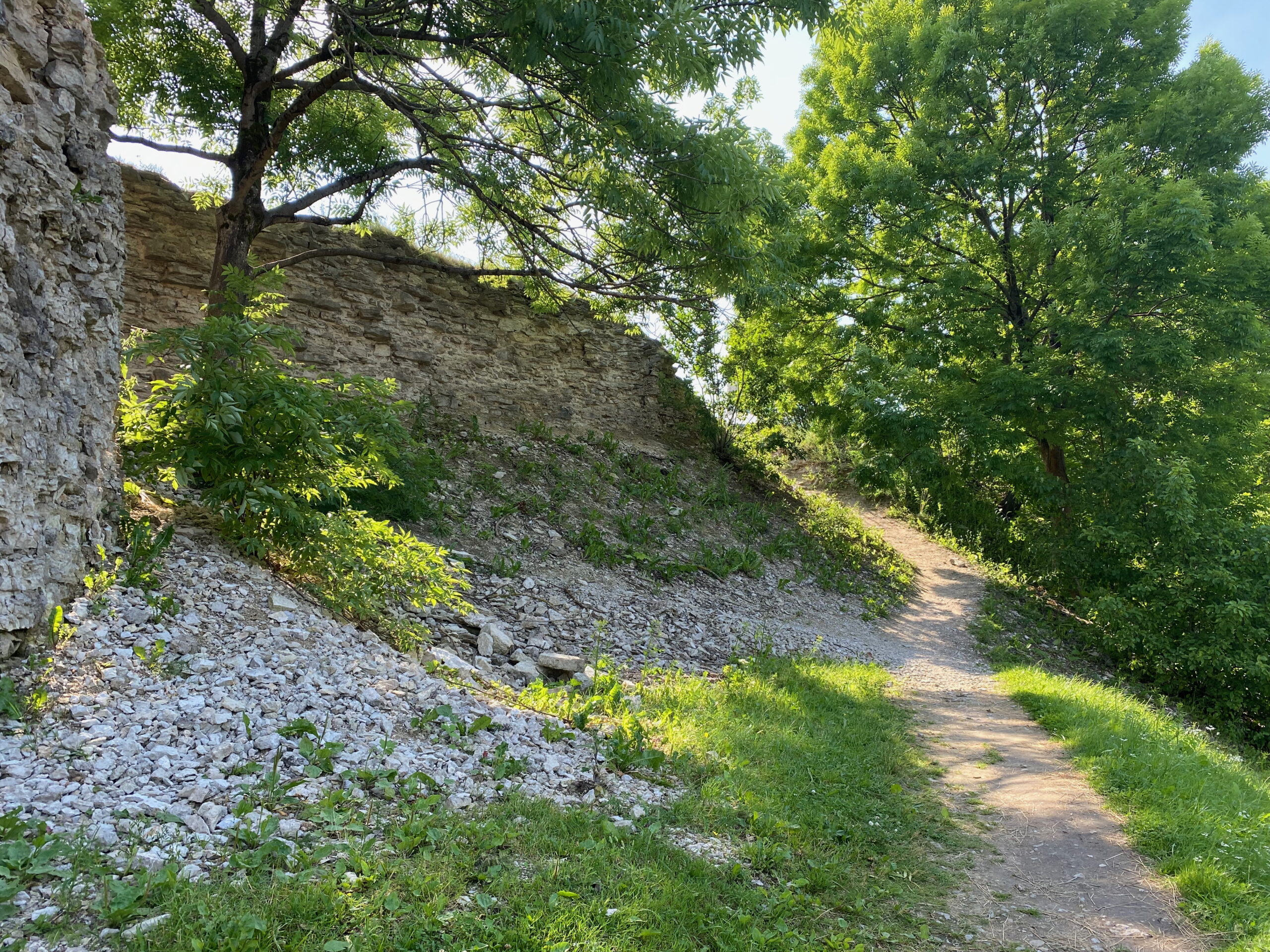 От Гремячьей башни отходит стена Окольного города. Она настолько уже обветшала и осыпалась, что через нее можно спокойно проникнуть внутрь крепостных укреплений. Там на зеленой лужайке приятно проводят время местные жители.