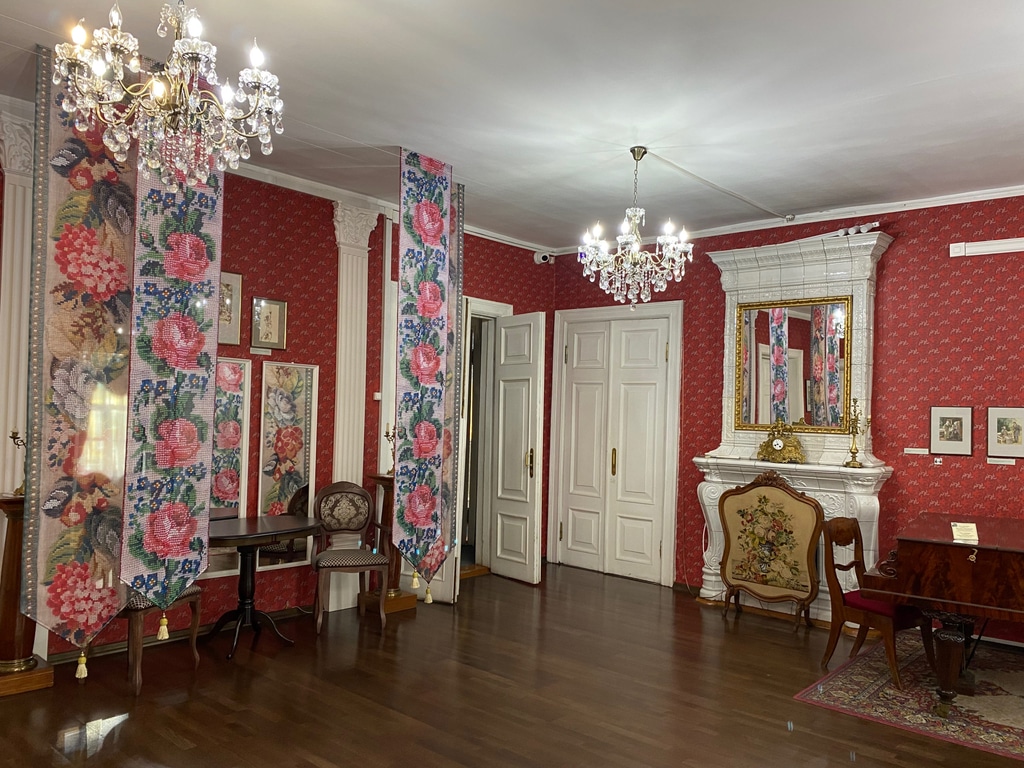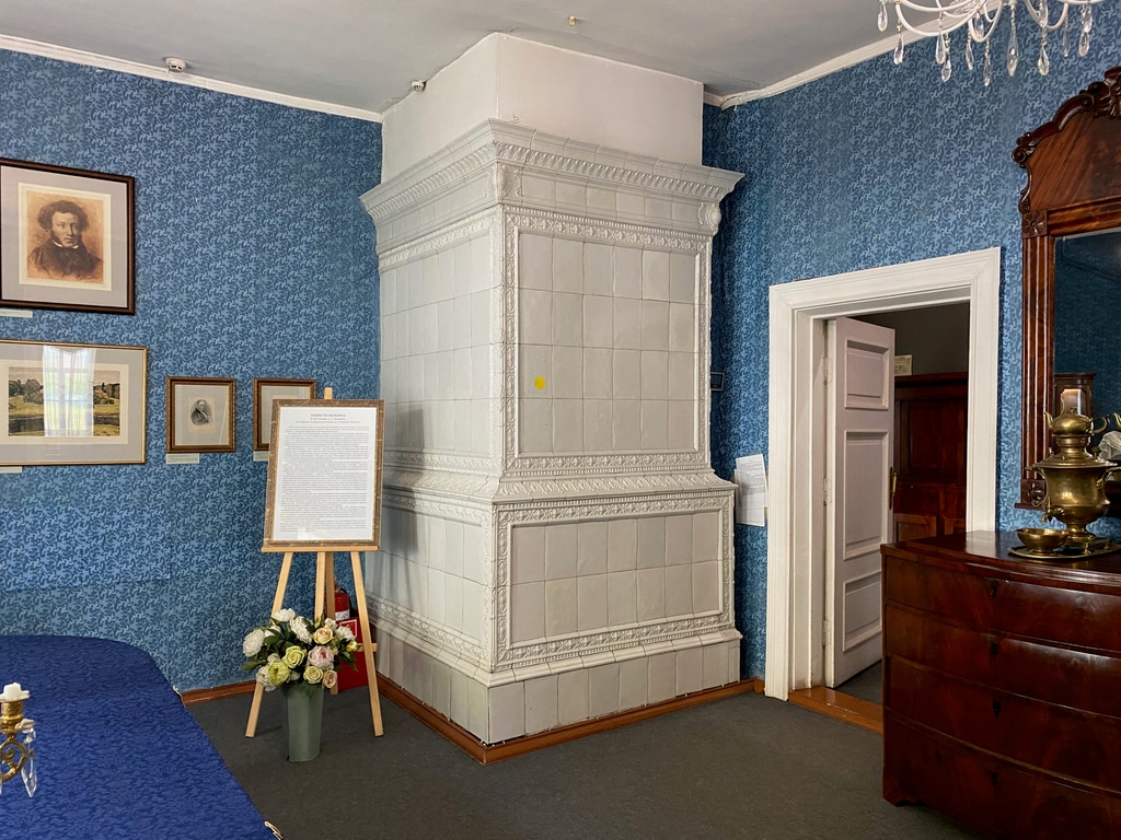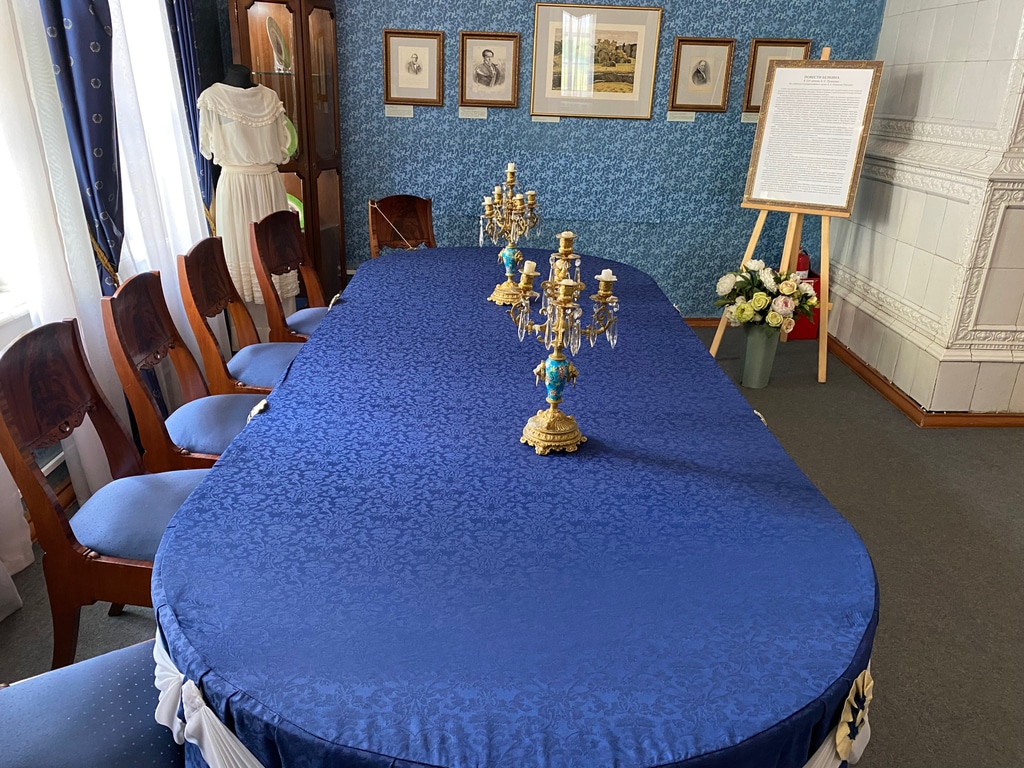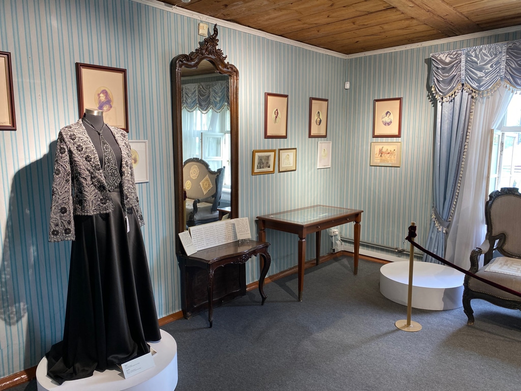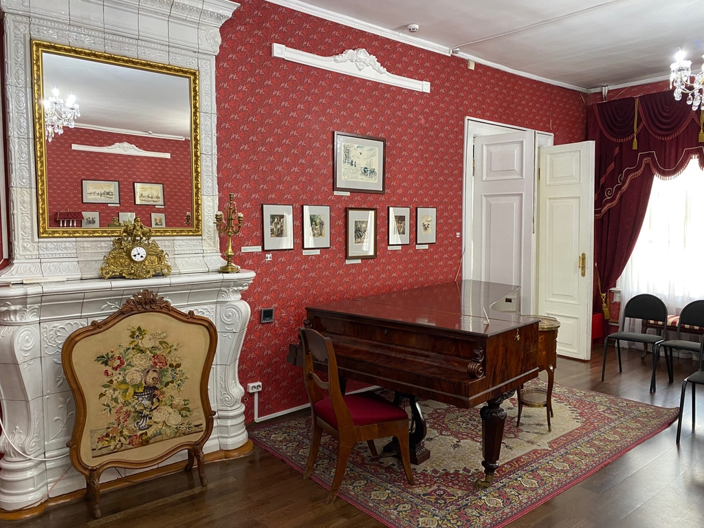 В гостиной представлен рояль, на котором любила играть Мария Волконская. Сделанный бельгийским мастером рояль прислал ей в 1837 году брат.
