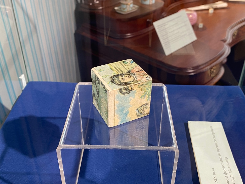 В пирамидальном пианино при реставрации был найден игрушечный кубик, которым когда-то играли дети Волконских.