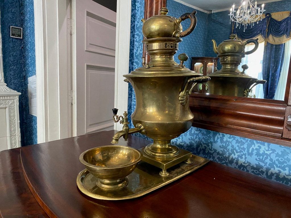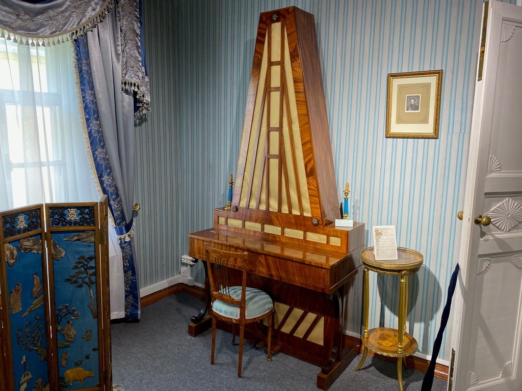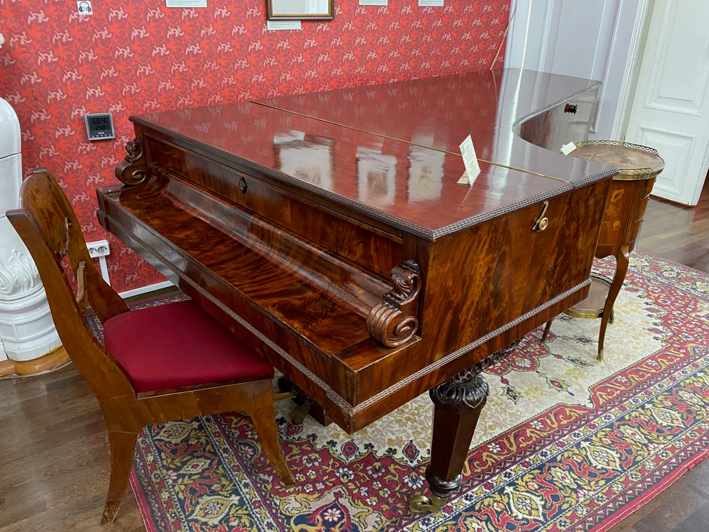 Ценным экспонатом в будуаре Марии Волконской является пирамидальное пианино конца 18 века.