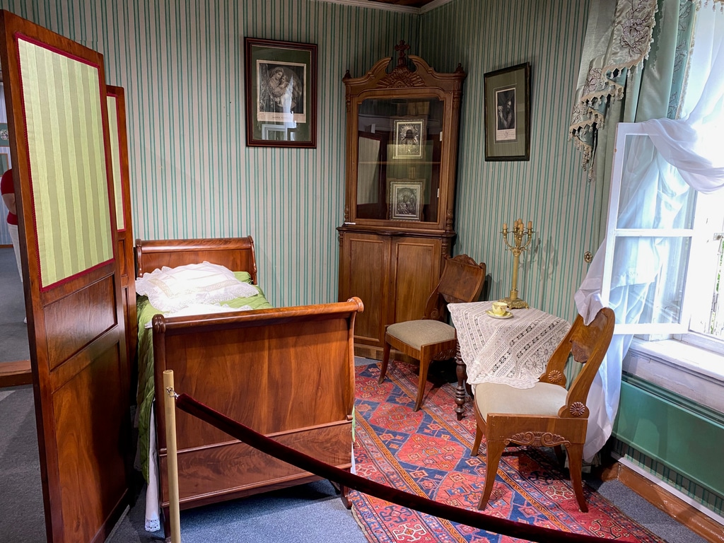 Подлинная спальная Марии Волконской до наших дней не сохранилась, но по мнению музейщиков должна была выглядеть примерно так как эта.
