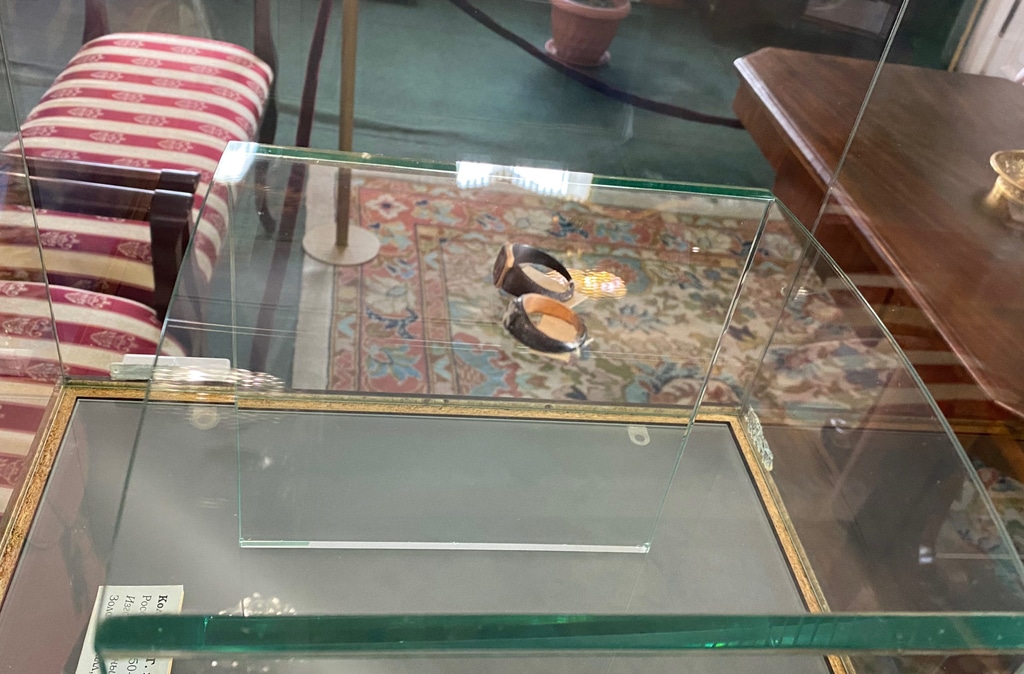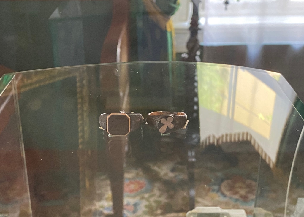 В его кабинете под стеклом можно увидеть обручальные кольца Волконских, изготовленные из звена кандалов.