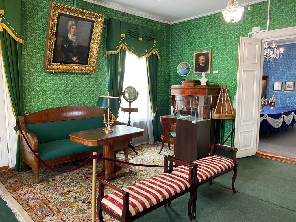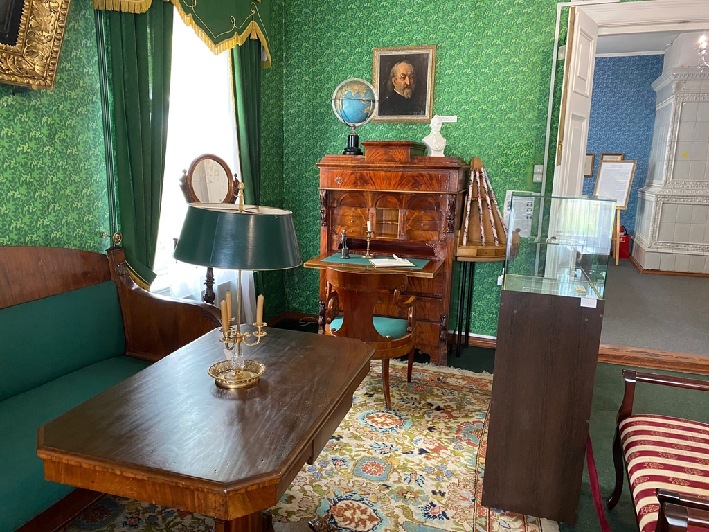 В господском доме Сергей Волконский чаще всего пребывал в своем кабинете. Здесь он читал, писал, работал с бумагами.