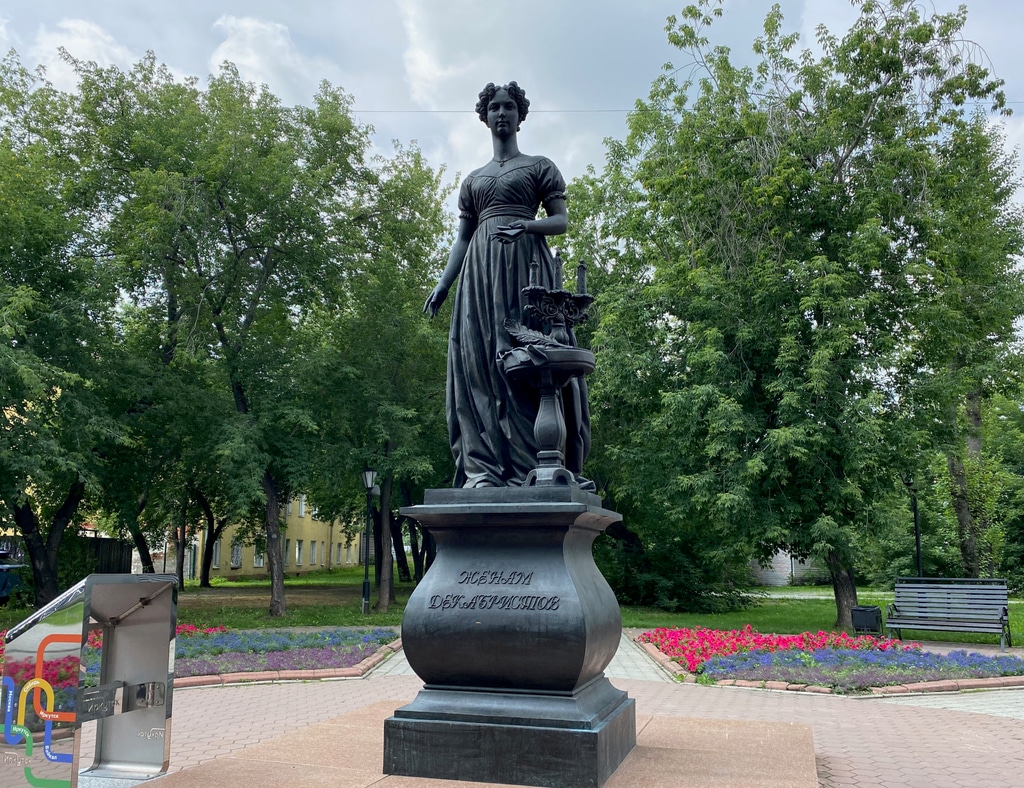 Памятник женам декабристов появился в Иркутске в 2011 году. Он изображает Марию Волконскую, последовавшую за своим мужем в Сибирь. Правда, первой, кто приехал в Сибирь, была не она, а Екатерина Трубецкая. Всего же вслед за декабристами отправилось 11 жен и еще 7 женщин — матери и сестры.