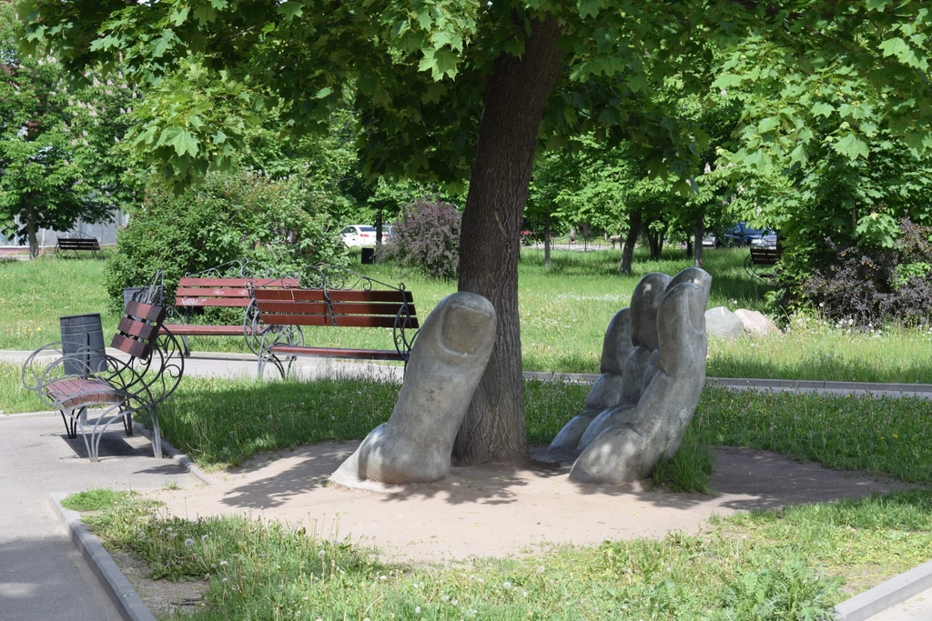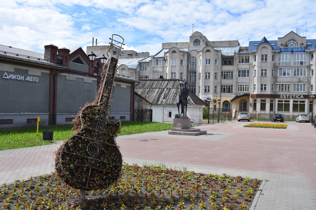 Отдых в небольшом, но оригинальном арт-сквере, пожалуй, порадует каждого уставшего путника. Здесь и необычный памятник местному уроженцу поэту Аркадию Северному, и памятник таксе Люси, и цветочная композиция в форме гитары. Кстати, такса по совместительству является еще и скамейкой.