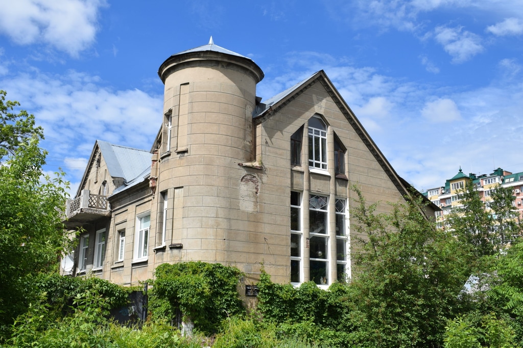 Название Дом-птица здание получило потому, что на плане сооружение напоминает пернатую с расправленными крыльями. Необычная башенка сверху предназначалась для обсерватории. Кстати, школа, а точнее гимназия работает в этом доме и сегодня.