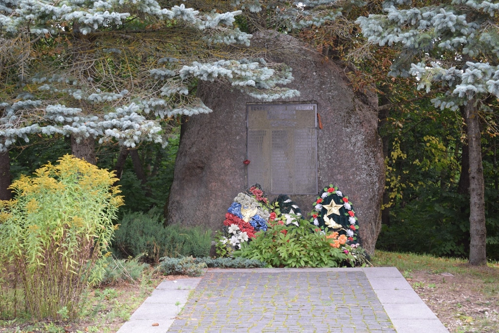 Кстати, во время Великой Отечественной войны 1941-1945 гг. Изборск оказался в немецкой оккупации. В память о погибших в годы войны изборянах в городе установлен вот такой памятник.