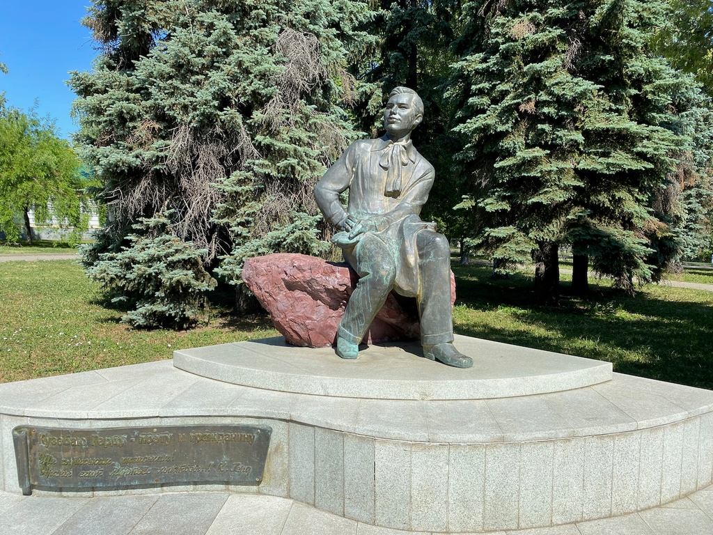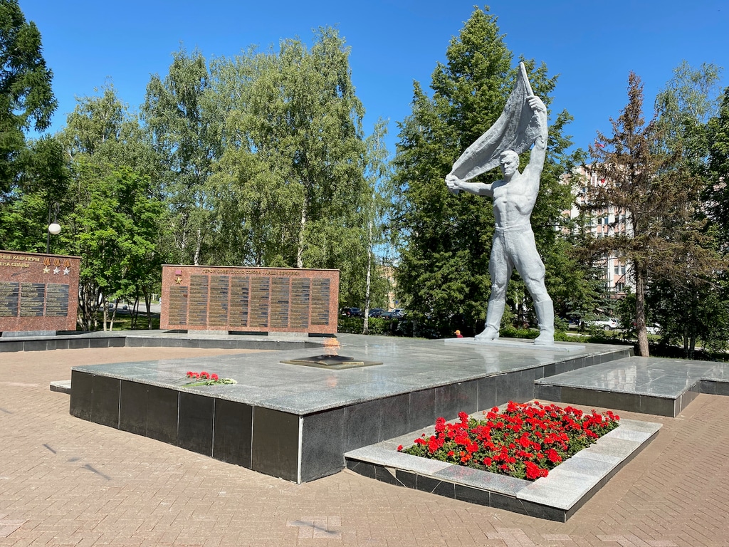 Сквер украшают монументы воинской и трудовой славы, установленные еще в советское время.
