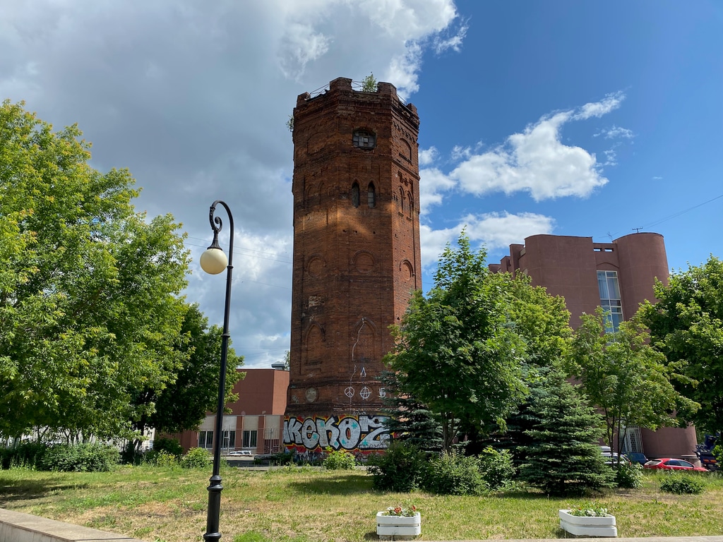Водонапорная башня — старейшее гидротехническое сооружение Ижевска. Ее построили еще до революции в 1915 году при попытке создания водопровода. Водопровод в Ижевске откроется позже уже при советской власти в 1932 году.