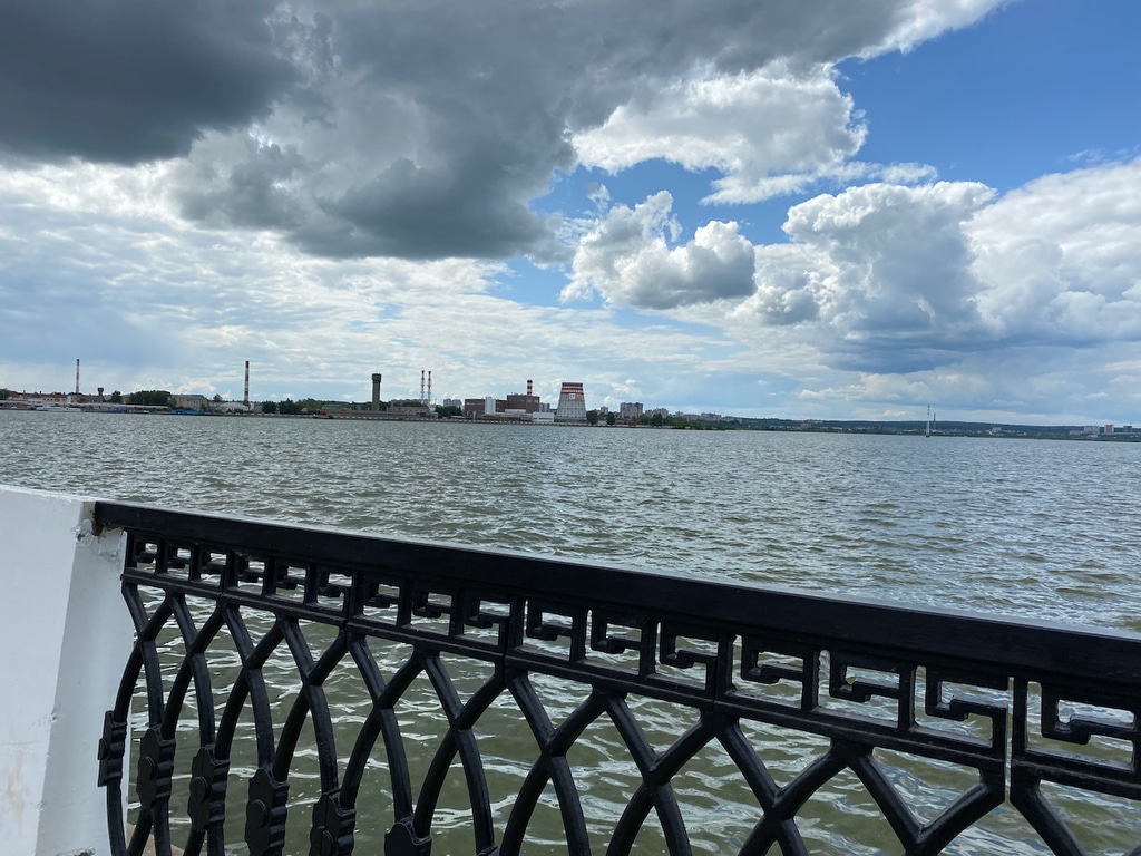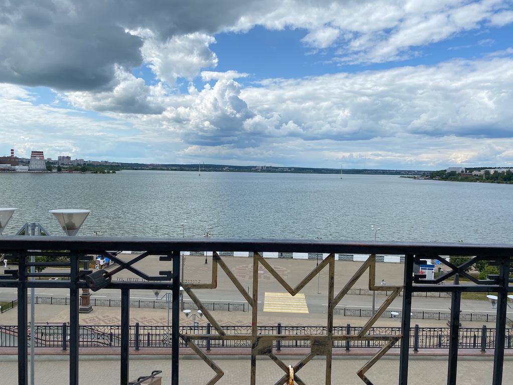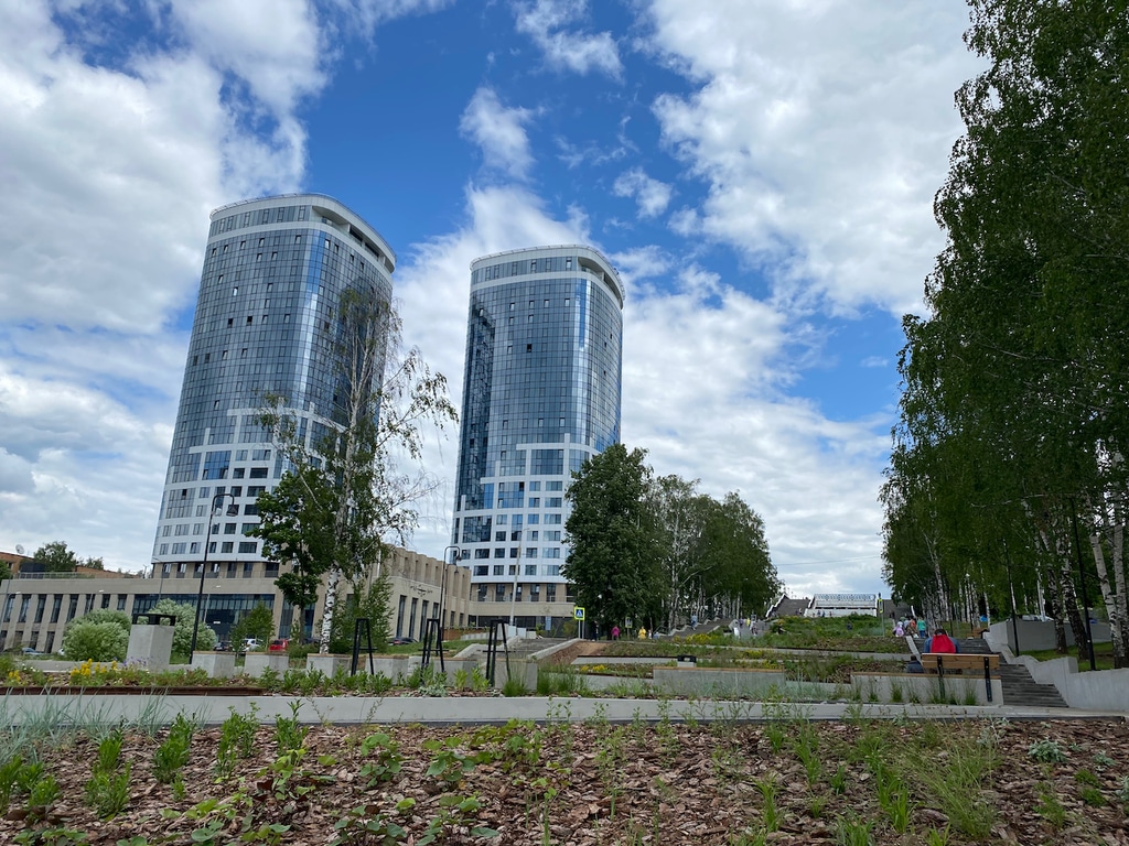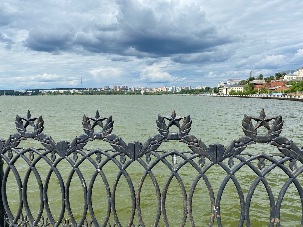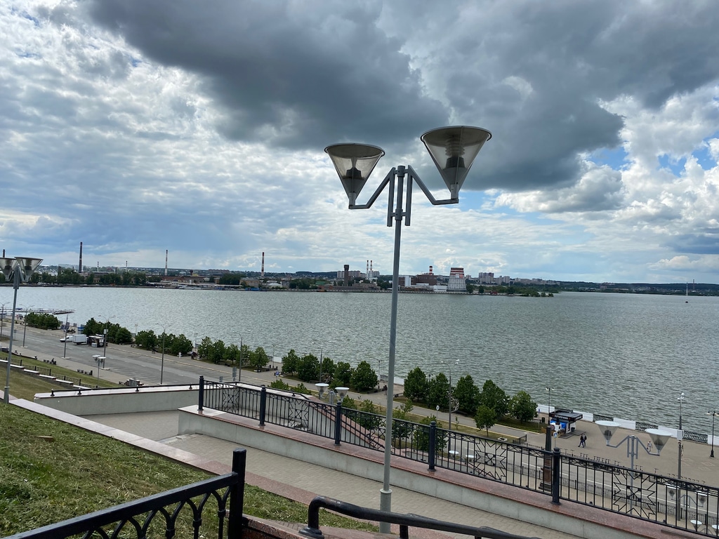 От Свято-Михайловского собора по улице Карла Маркса мы снова возвращаемся к Ижику, а дальше мимо современных жилых комплексов спускаемся к Ижевскому пруду.