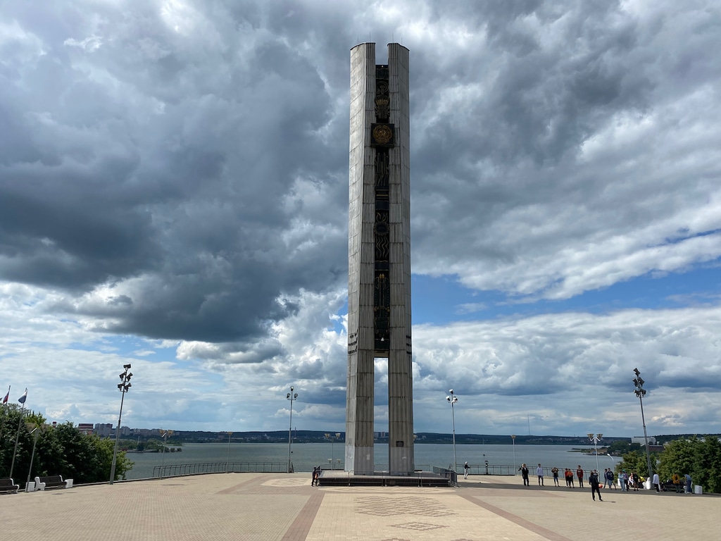 После спуска к набережной перед нами открывается высокий 46-метровый монумент.