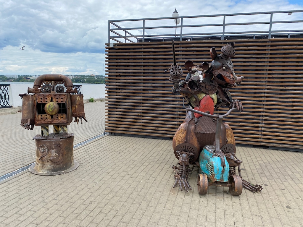 К сожалению, набережная на берегу пруда не отличается обилием зелени, что так важно для отдыха людей. Единственным ее украшением являются металлические скульптуры. Хотя часть местных жителей считают, что эти арт-объекты не украшают, а только портят набережную.